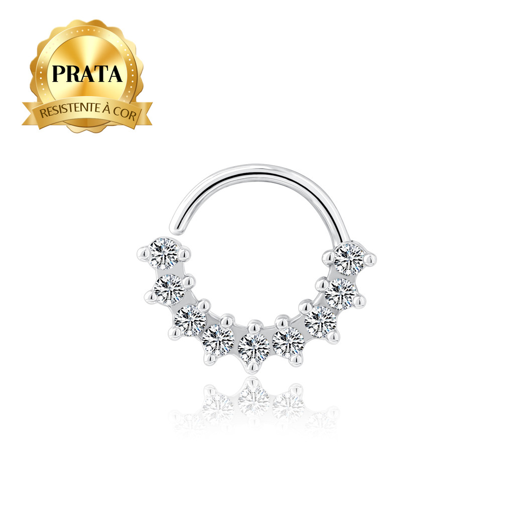 Piercing Orelha Nariz Argola Torção Prata 925 9 Pedras Zircônias Cravejado Para Helix Septo Rook Conch Boca Detalhes