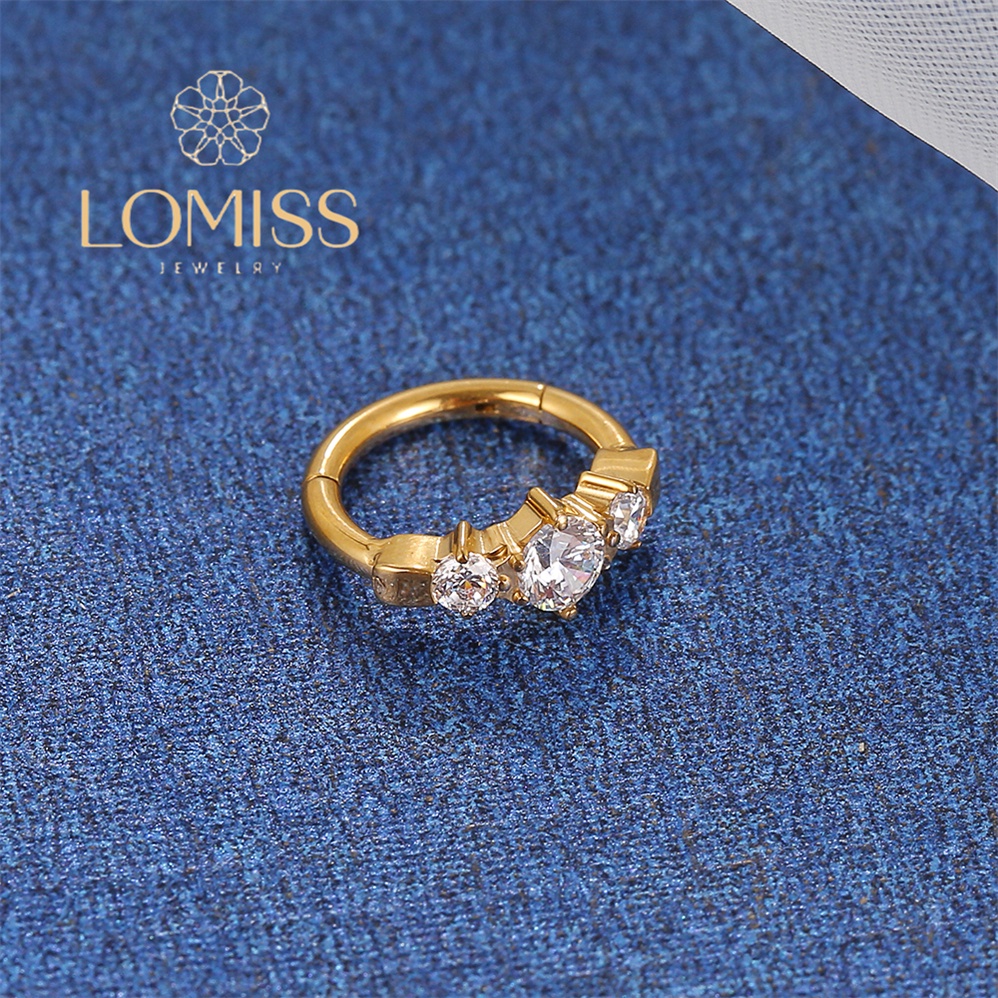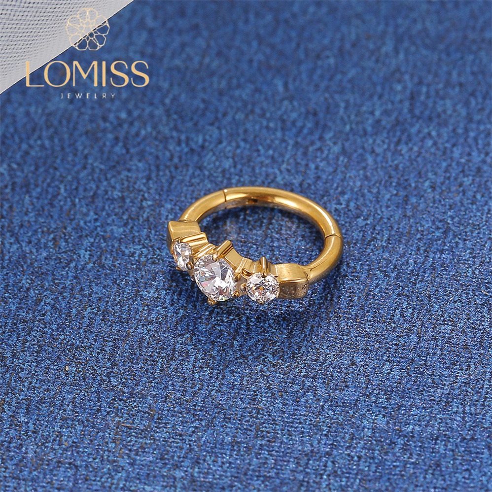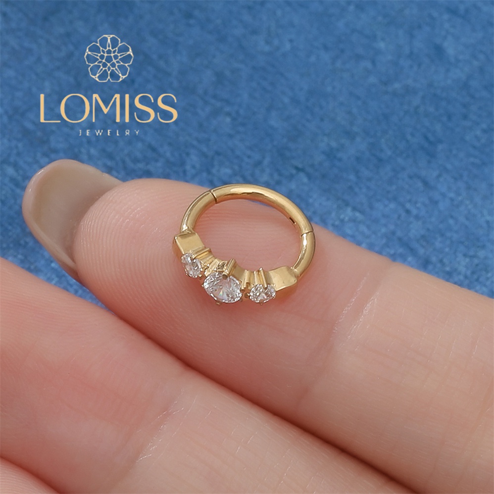 LOMISS Piercing Helix Conch Argola Titânio Clik Redondo Zircônias Cravejadas Rook Nariz Do Argola