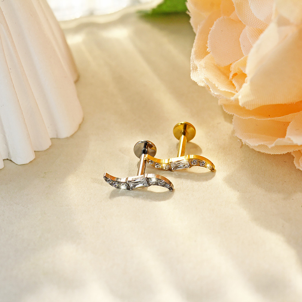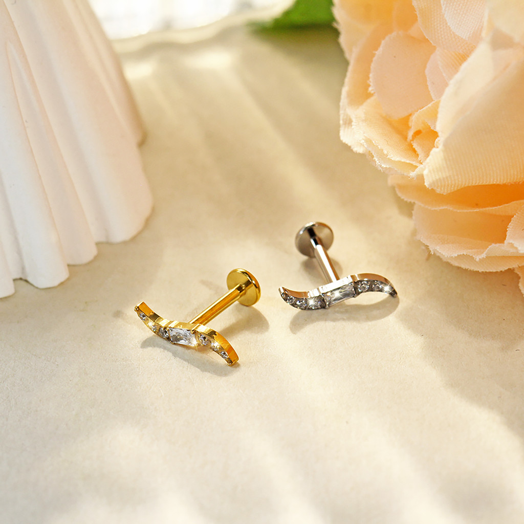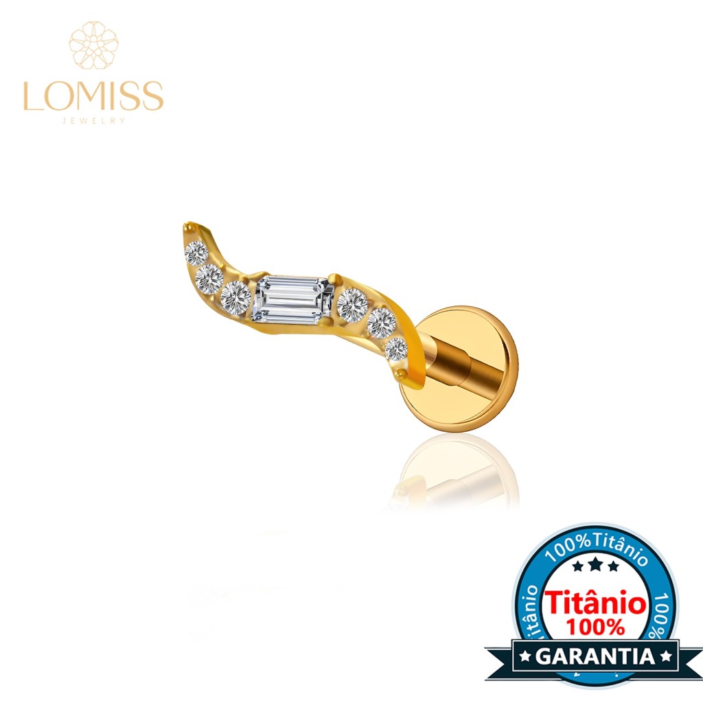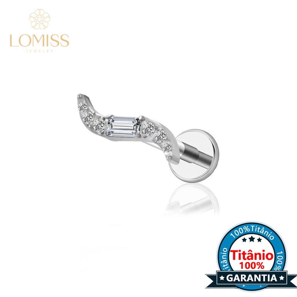 Piercing Labret Titânio Zircônia Onda / Cobra Rosca Interna - Flat Boca Tragus Helix Nariz Conch Lóbulo Lateral