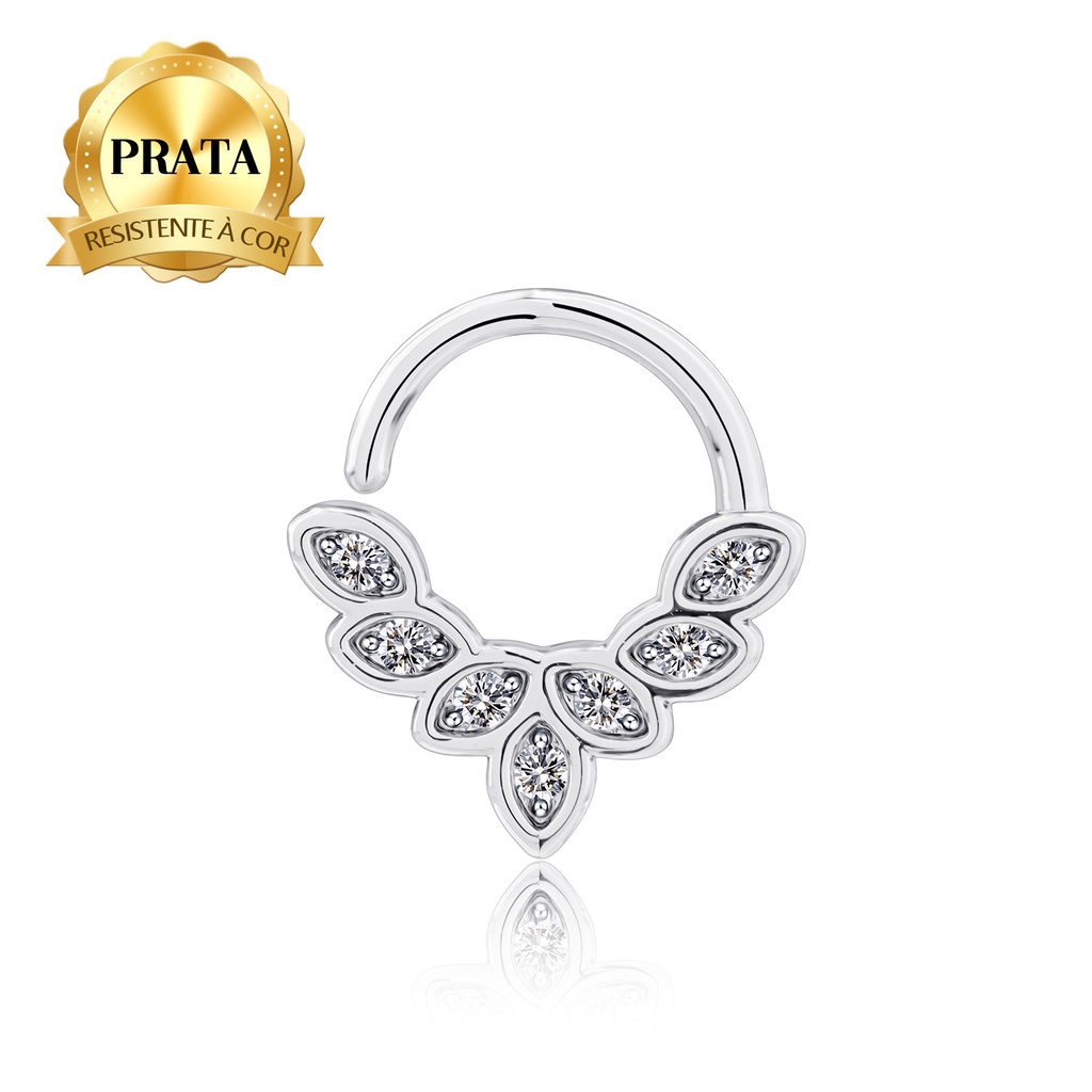 Piercing Orelha Tragus Nariz Argola Prata 925 Torção Zircônias Cravejado - Conch Septo Boca Pontos de Luz