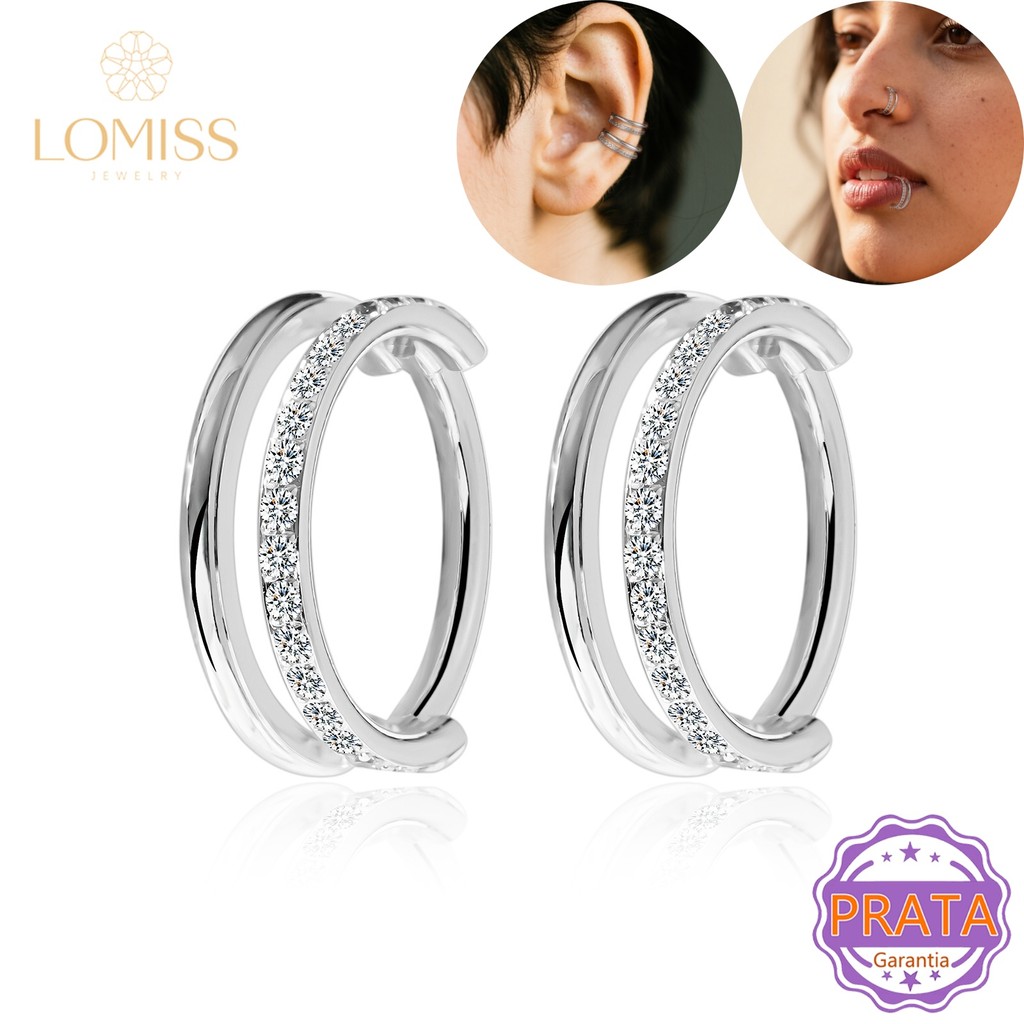 Piercing Nariz Septo Argola Circular Prata 925 Lateral Cravejado Fileira Zircônia Segmento Articulado Boca Conch Orelha