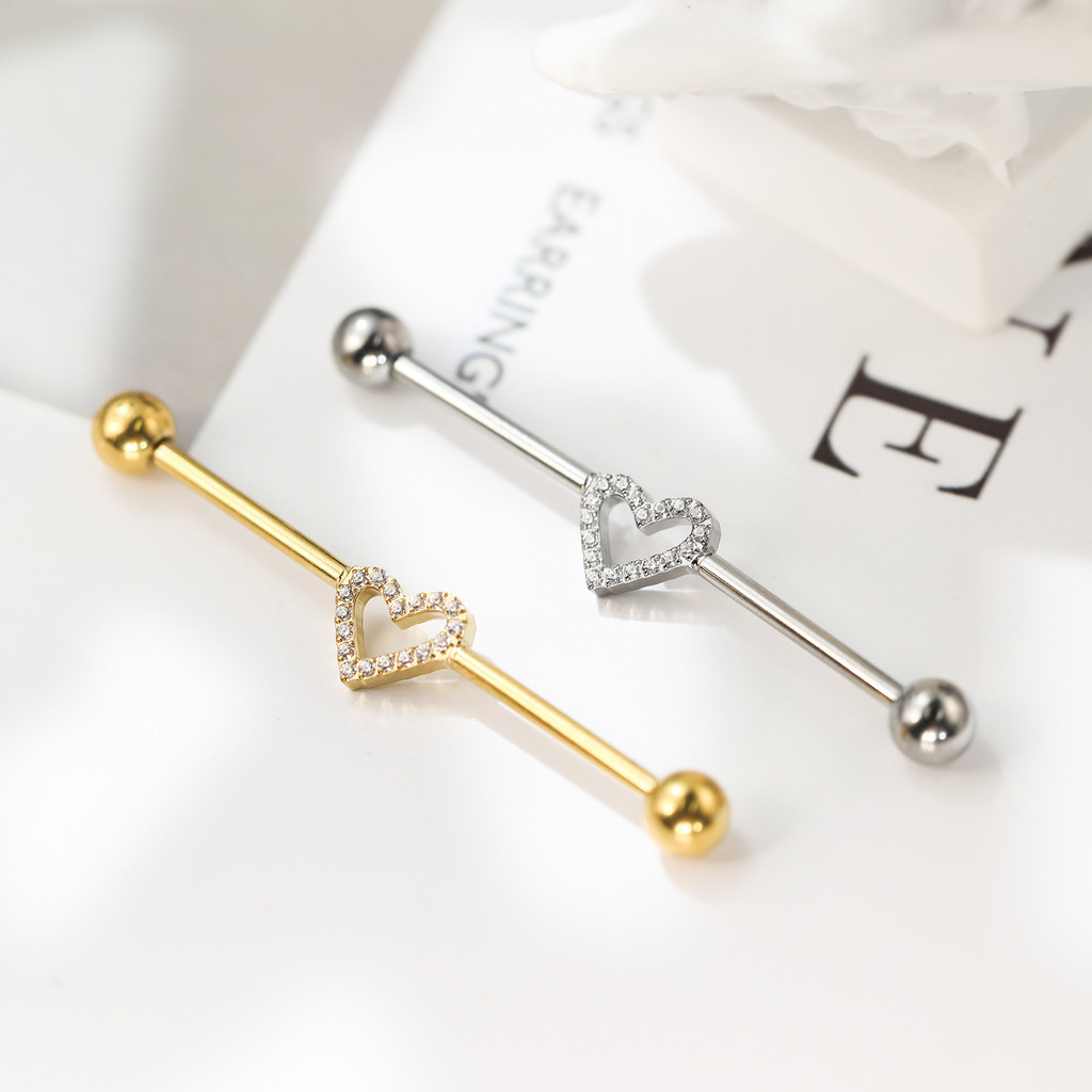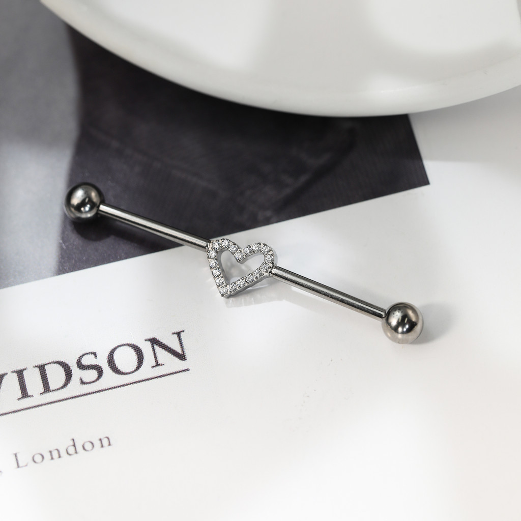Piercing Orelha Transversal Titânio Coração Zircônia Cravejada