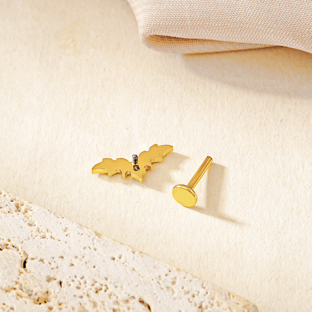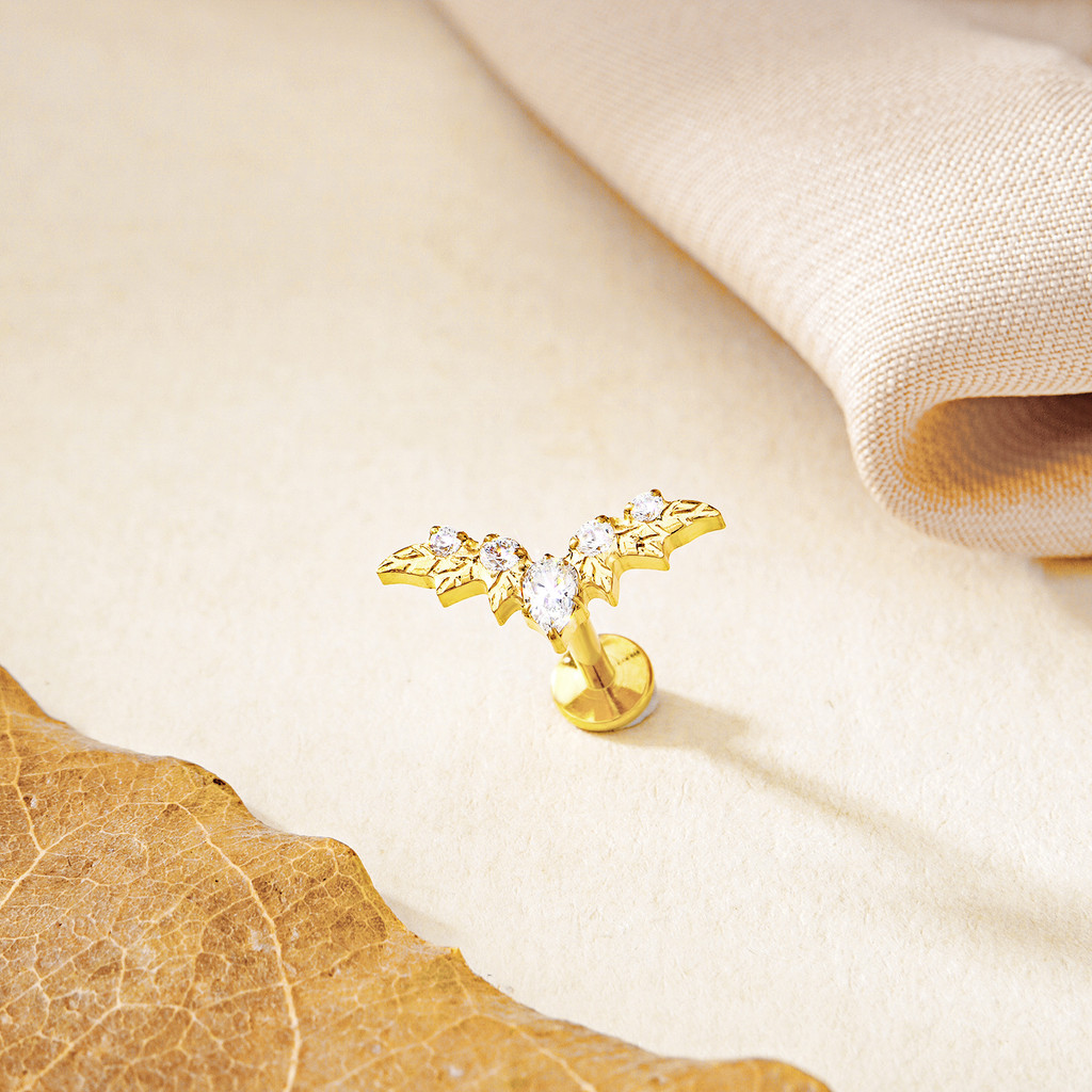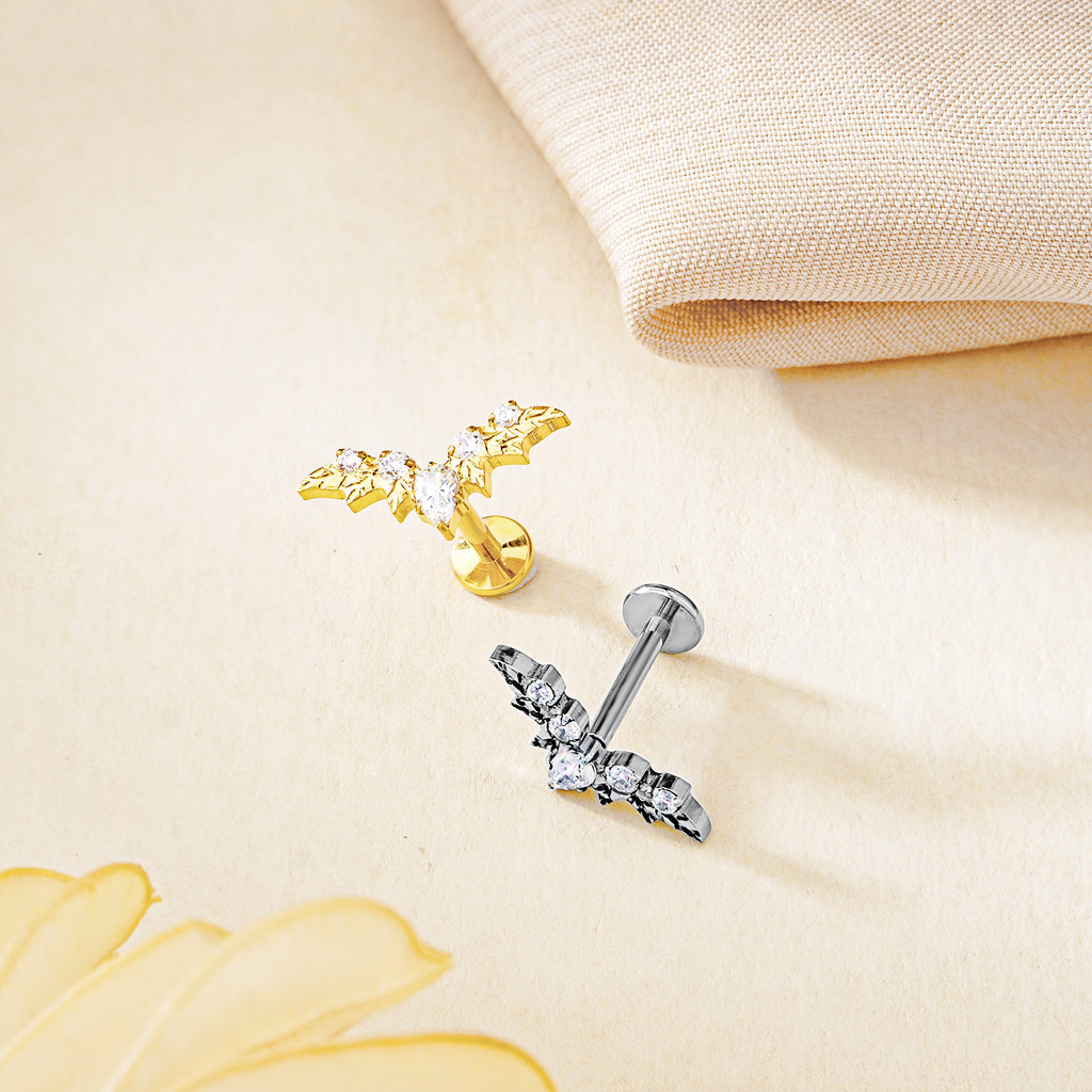 Piercing Orelha Labret Titânio Pvd Com Folhas Morcego Cluster 5 Zircônias Cravejado Tragus Lábio Brincos