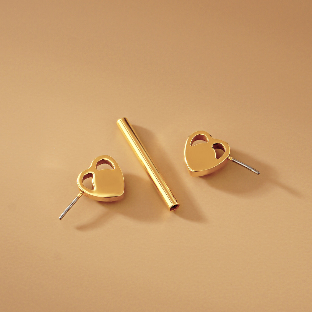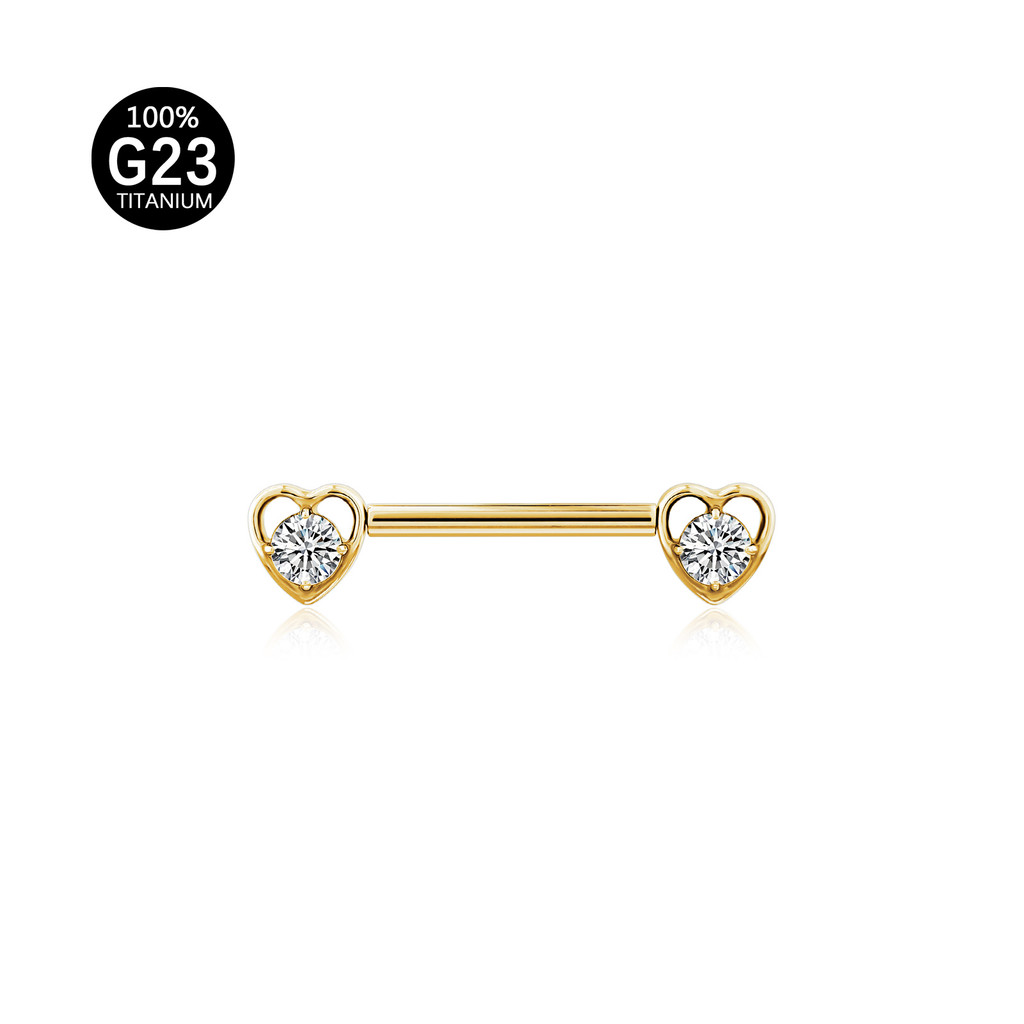 Piercing Mamilo Barbell Titânio Pvd Push Pin 2 Coraçãos Zircônias Transversal Piercing