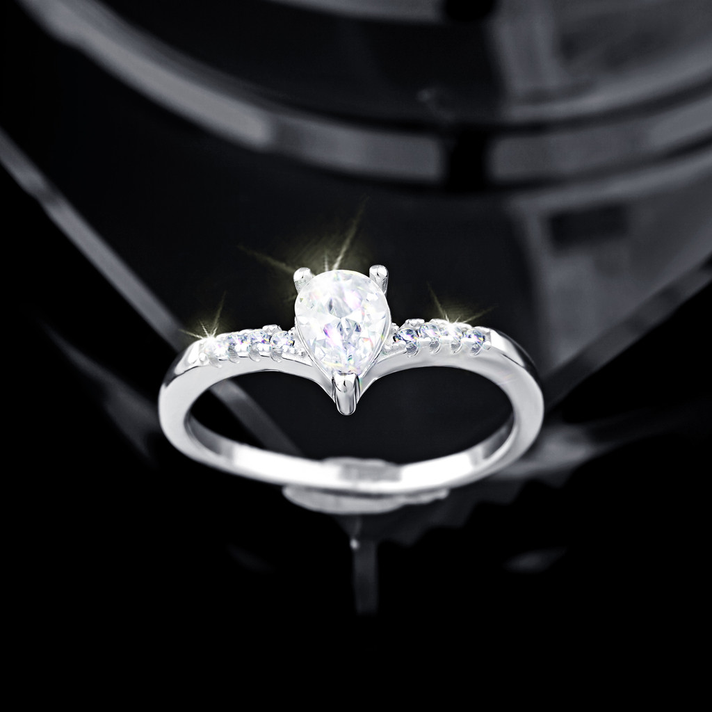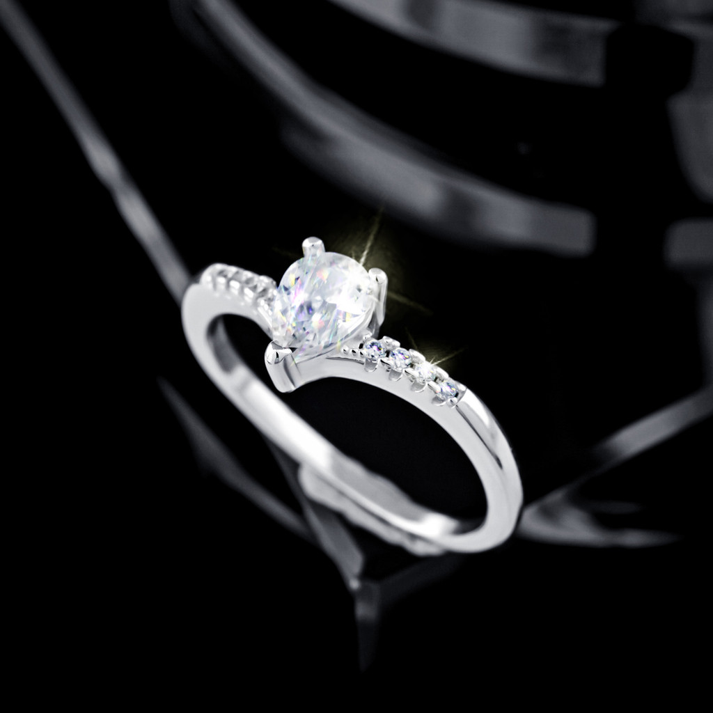 Anel Lindo Prata 925 Zircônias Cravejado Gota Formato Delicado Aliança Multitamanho Feminino Presente