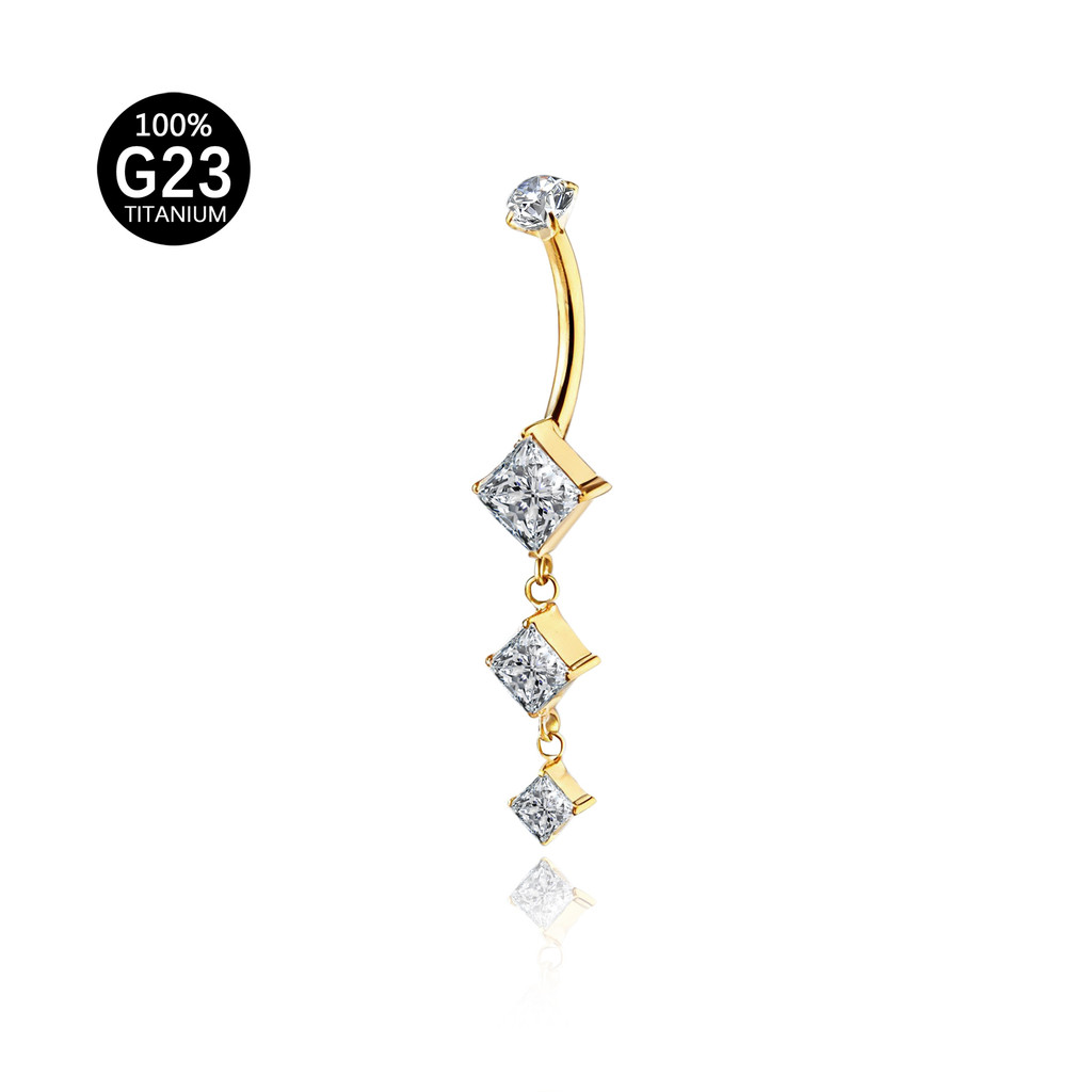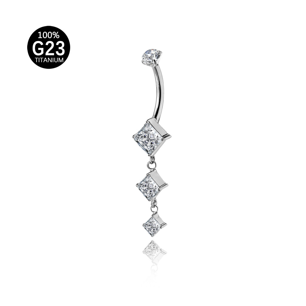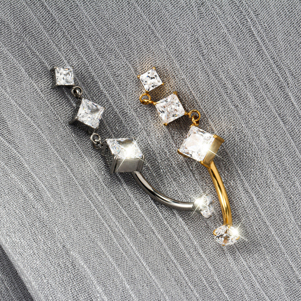 Piercing Banana Umbigo Com Pingente 3 Zircônias Titânio 1,6x10 mm