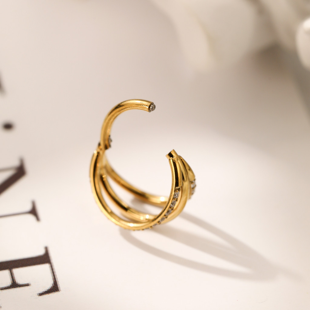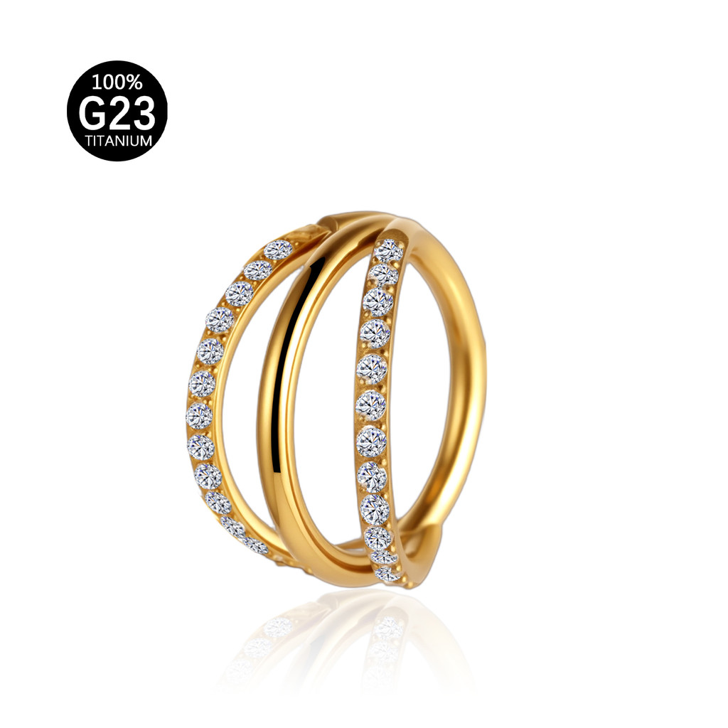 Piercing Nariz Cravejado Helix Três Fileira Titânio Segmento Fileira Cravejada Nostril Dourado Orelha Conch Daith Argola