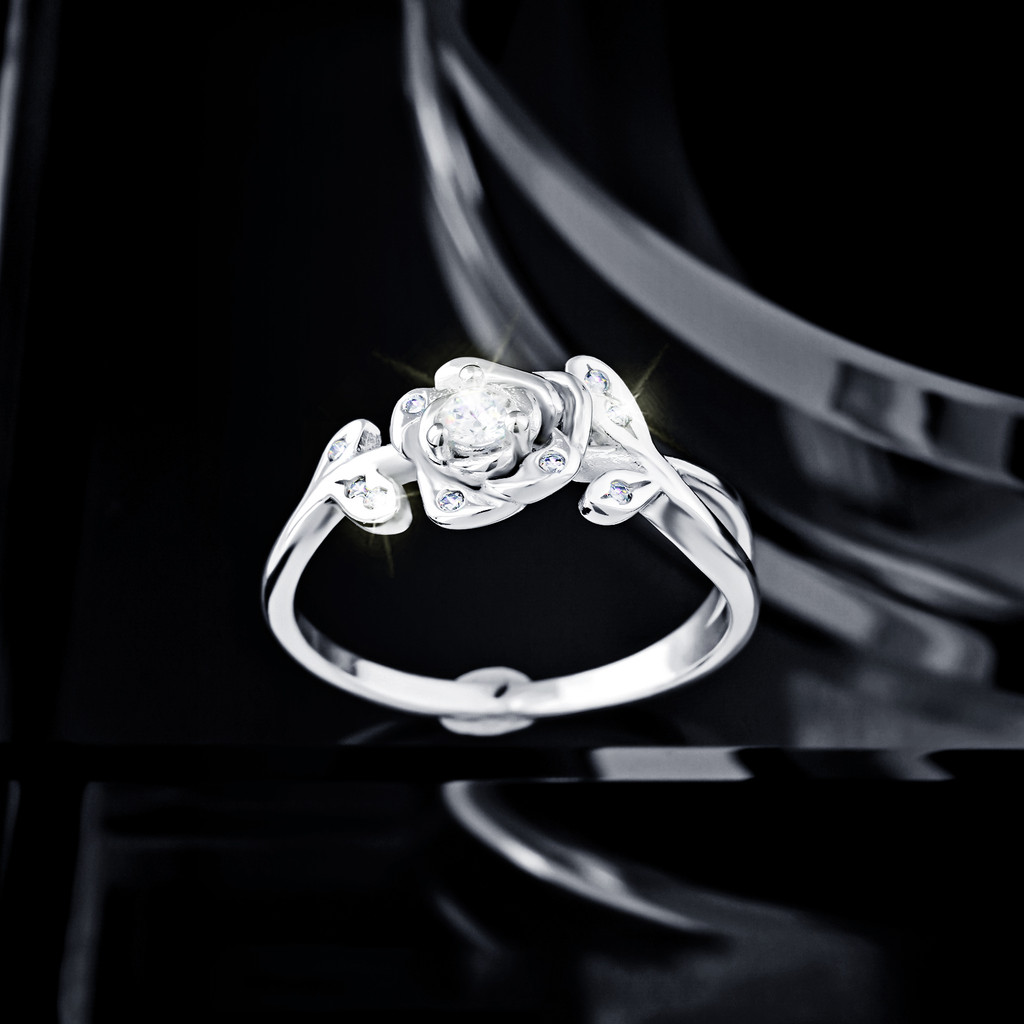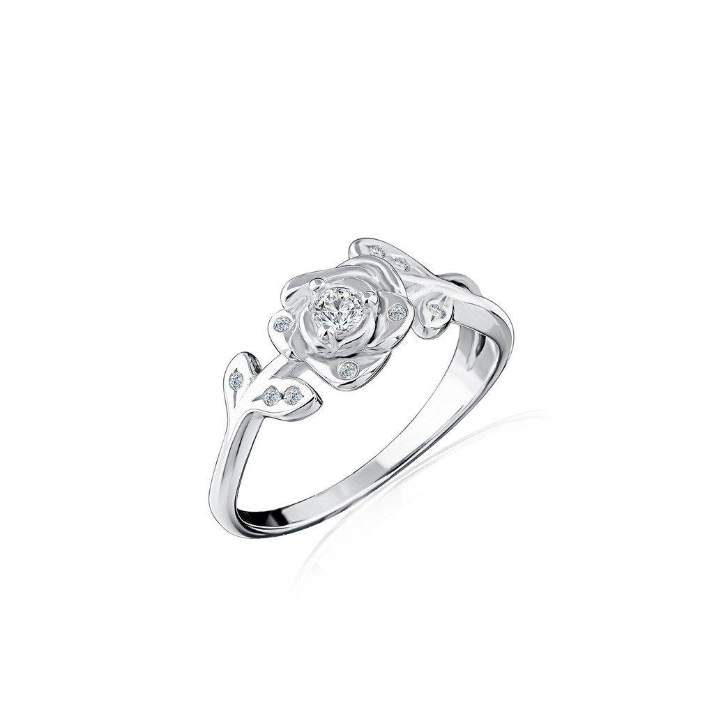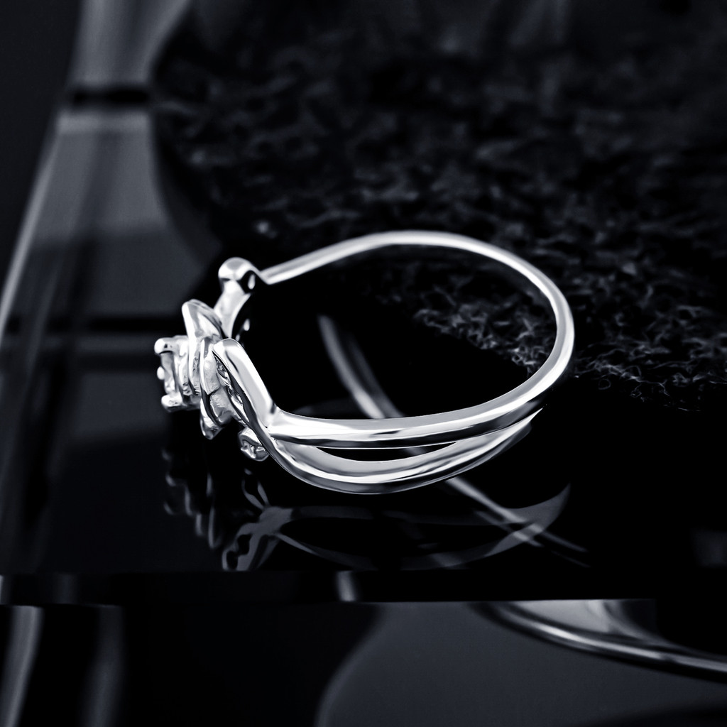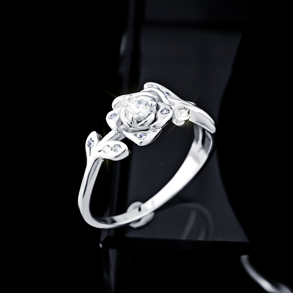 Anel Prata 925 Flor de Rosa Redondo Cravejado Com Zircônias - Feminino Jóias Aliança Romântico Lindo de Casamento Namoro