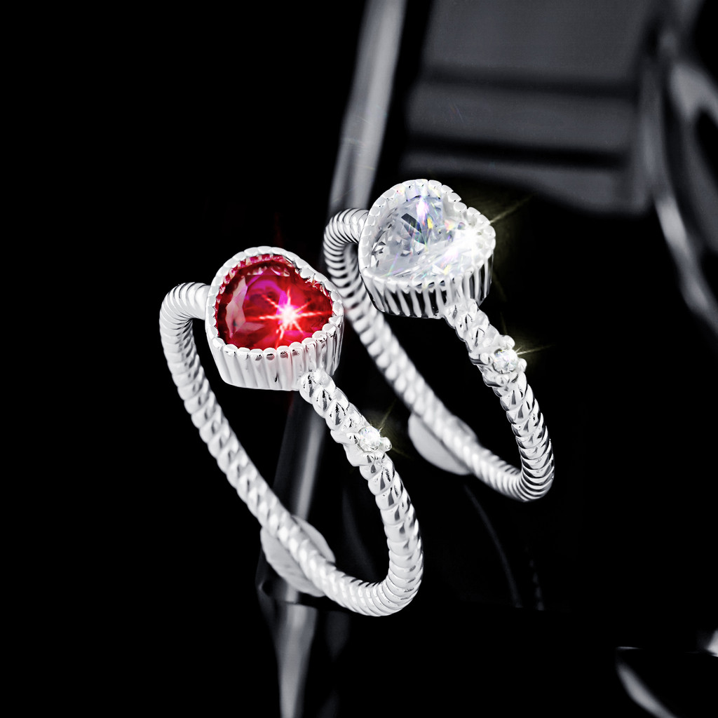 Anel Prata 925 Zircônias Coração Vermelho Com Aro Detalhado Feminino Delicado Para Namoro Casal e Compromisso Legítimo