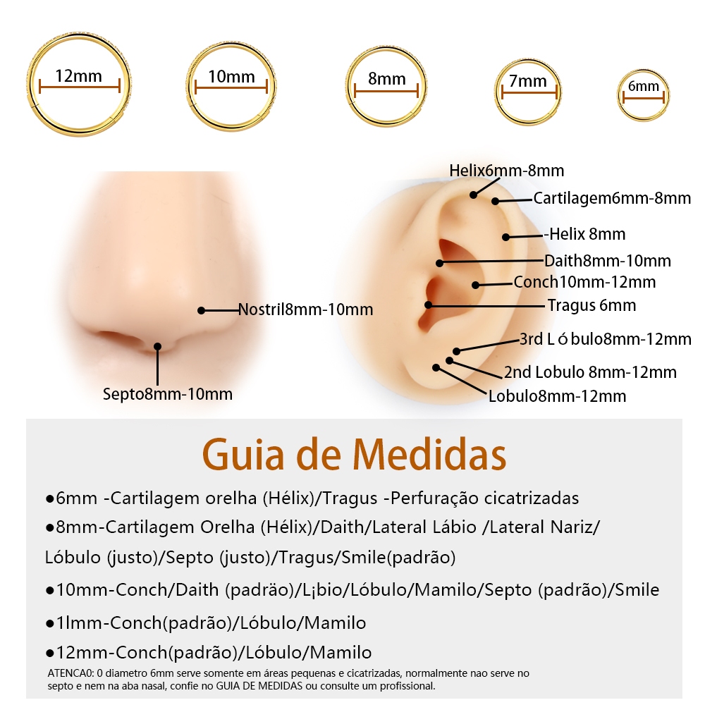 Piercing Nariz Argola Clik Titânio Zircônias Colorida Cravejada Orelha Tragus Septril Rook Conch Boca Cultura do Marina