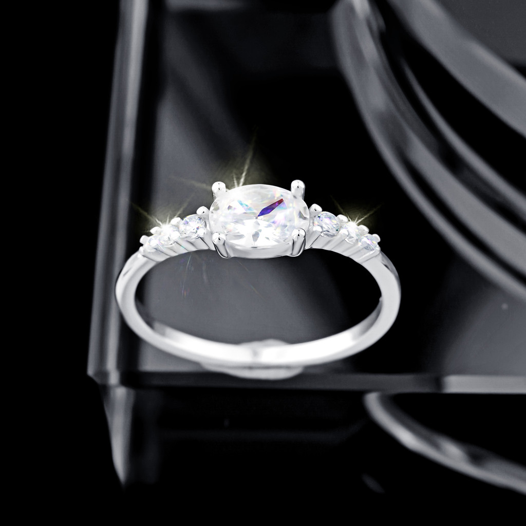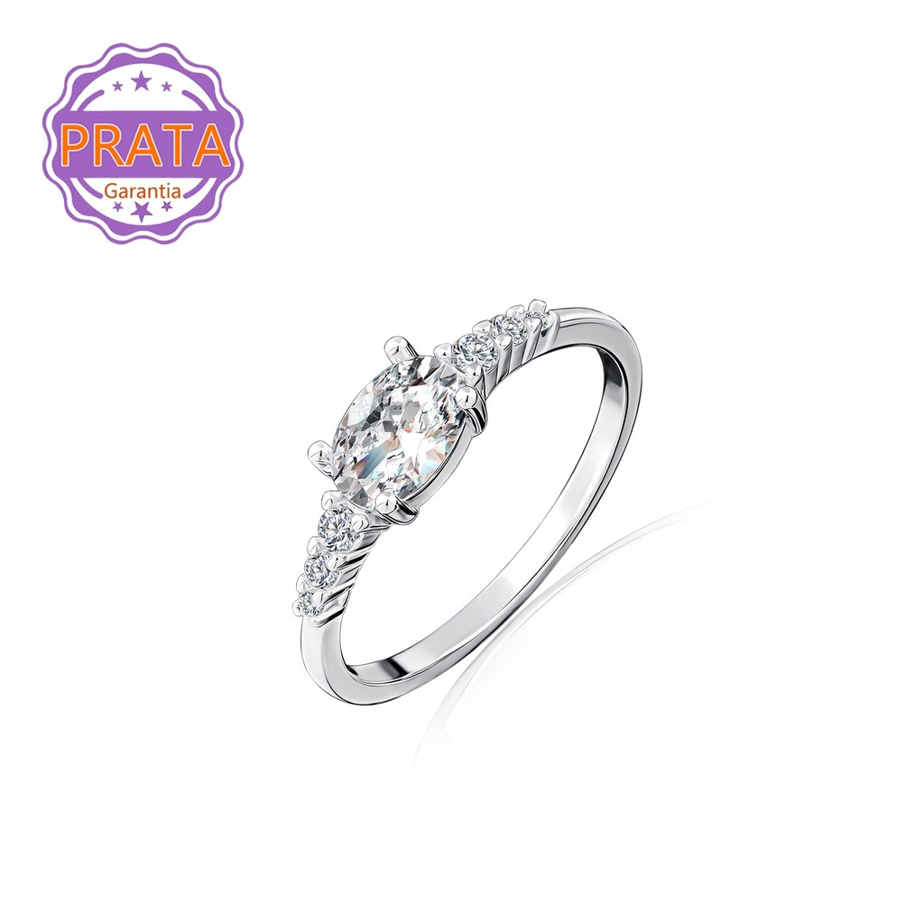 Anel Prata 925 Zircônias Oval Feminino Solitário Para Namoro e Compromisso Delicado Legítimo Brilhante Presente