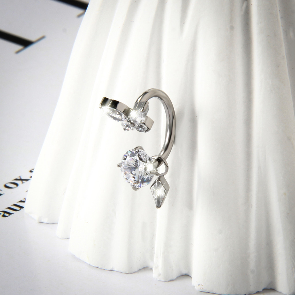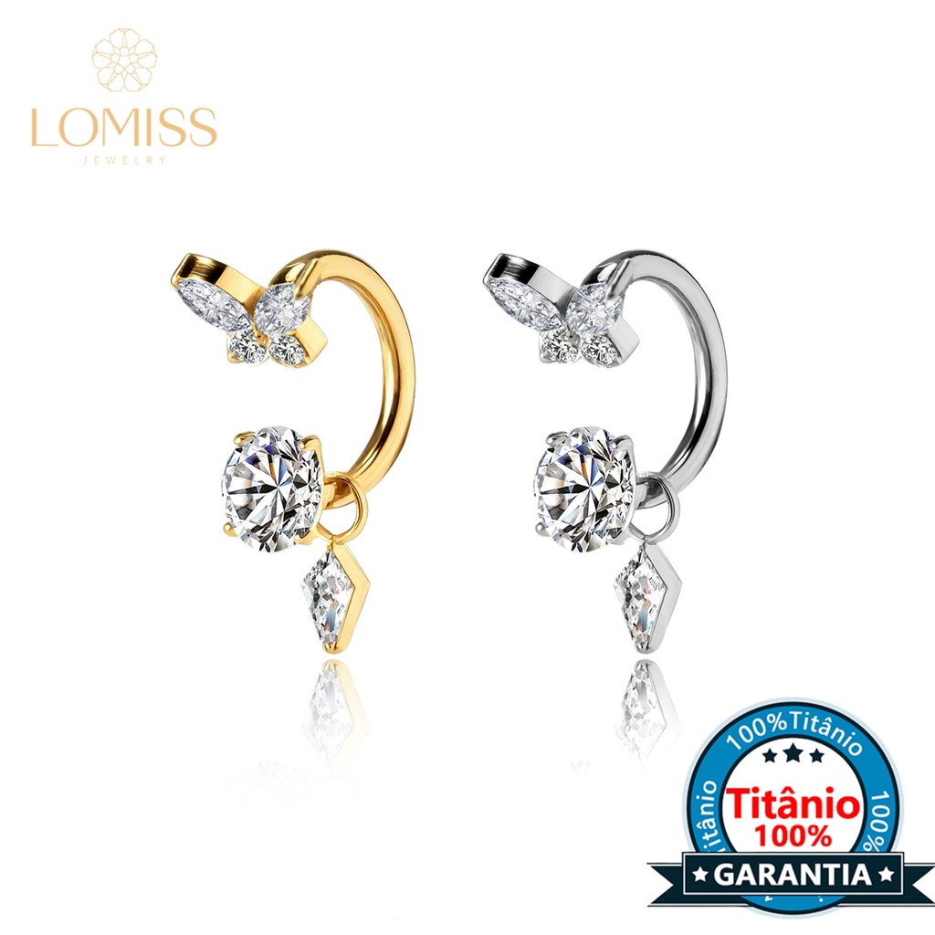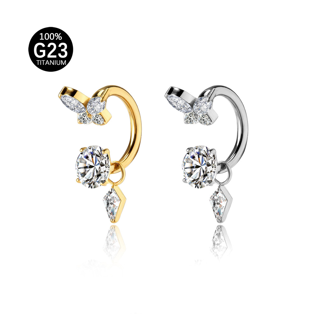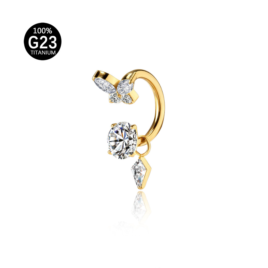 Piercing Ferradura Titânio Borboleta Zircônia Cravejado Com Pingente Orelha Argola Septo Boca Helix Daith Tragus Conch