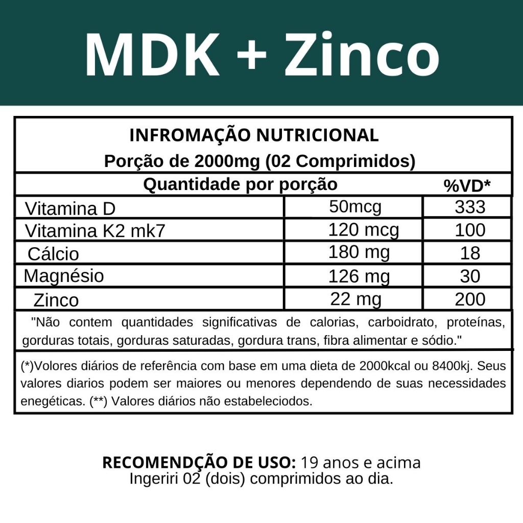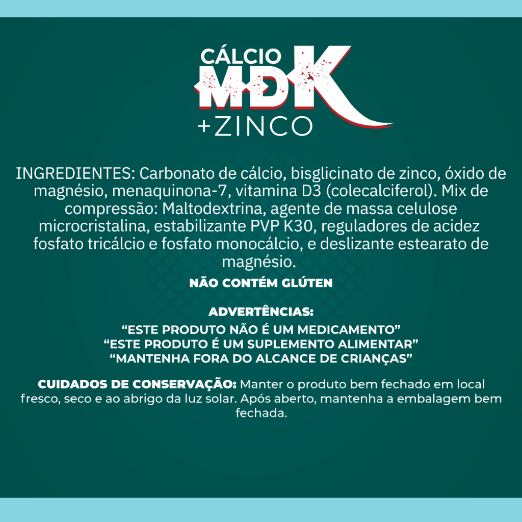 Vitamina D3+ K2 MK7 + Magnésio + Cálcio + Zinco - Suplemento 5 em 1 Junta, Articulação, Complexo Ósseo