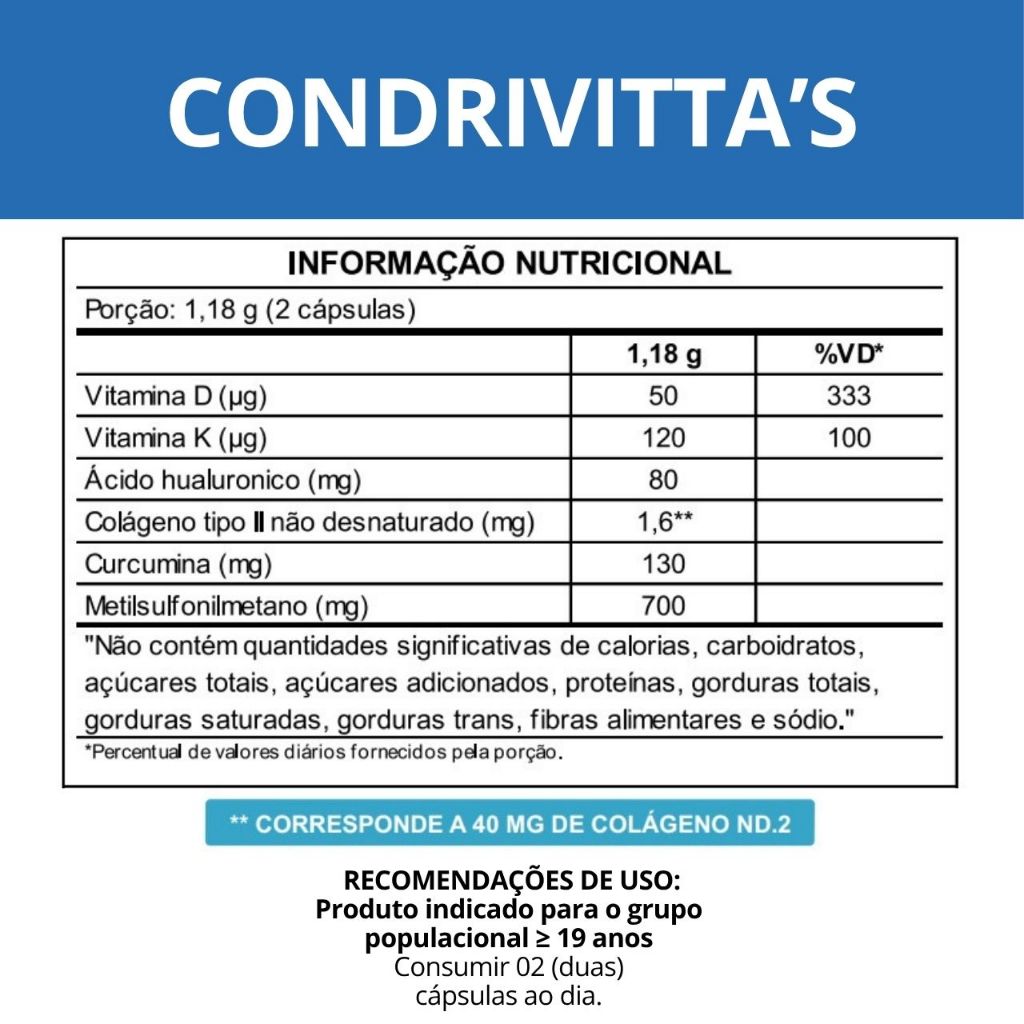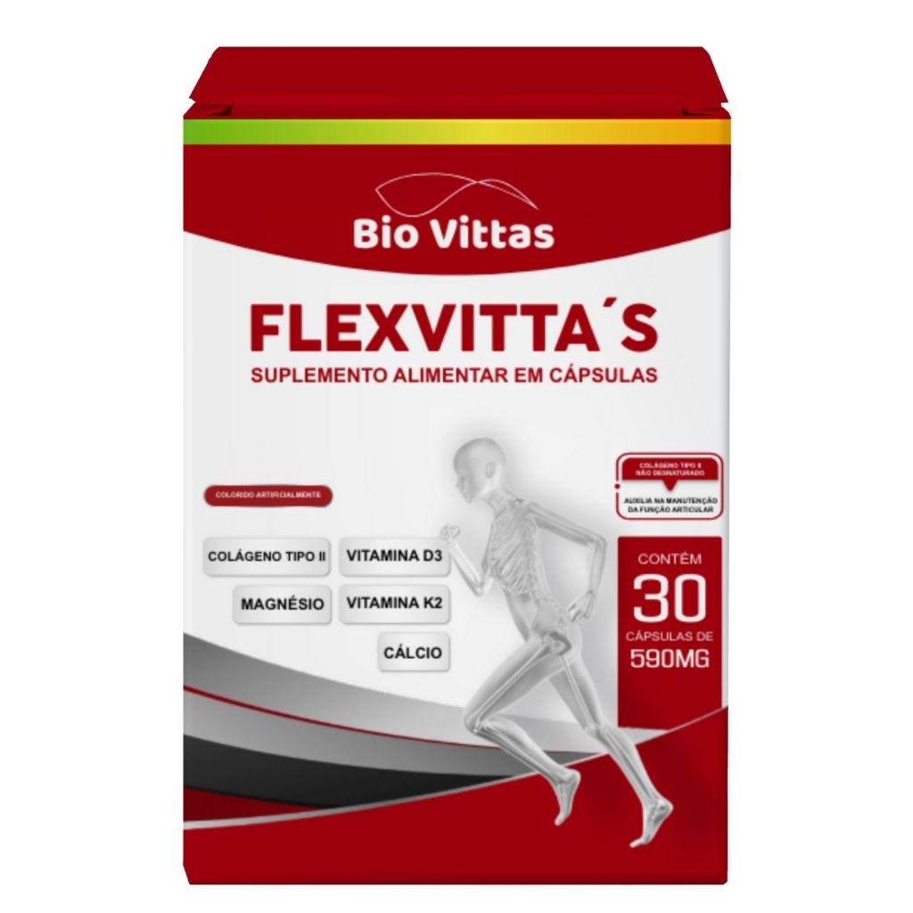 Cálcio + Magnésio + Colágeno Tipo 2 Articulações + Vitmina D3 + K2 + Curcumina (Condri + Flex) 30 Cápsulas - Bio Vittas