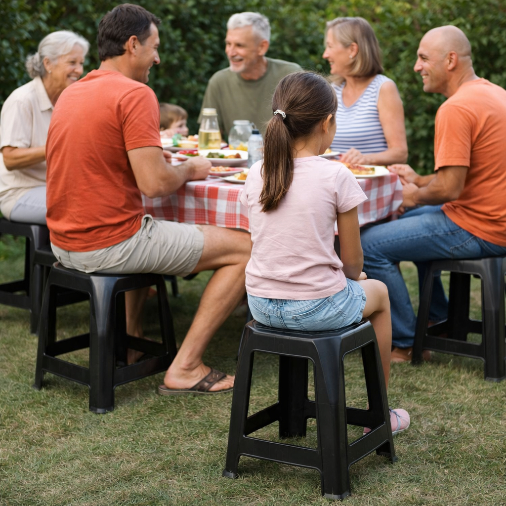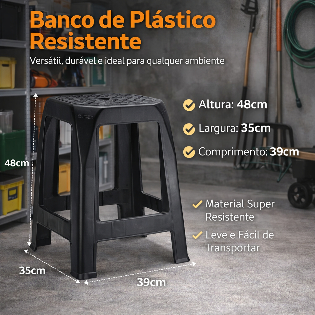 Kit 6 Bancos Plásticos Preta Banquetas Multiuso Resistentes Para Cozinha Festas Bar suporta 100 kg