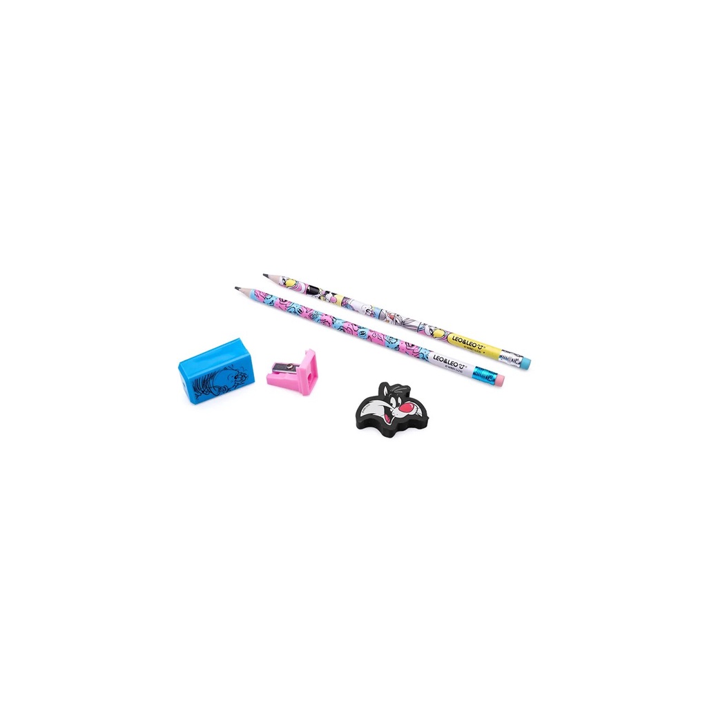 Kit Lápis HB Looney Tunes 2 Lápis /Apontador/BorrachaLeo&Leo