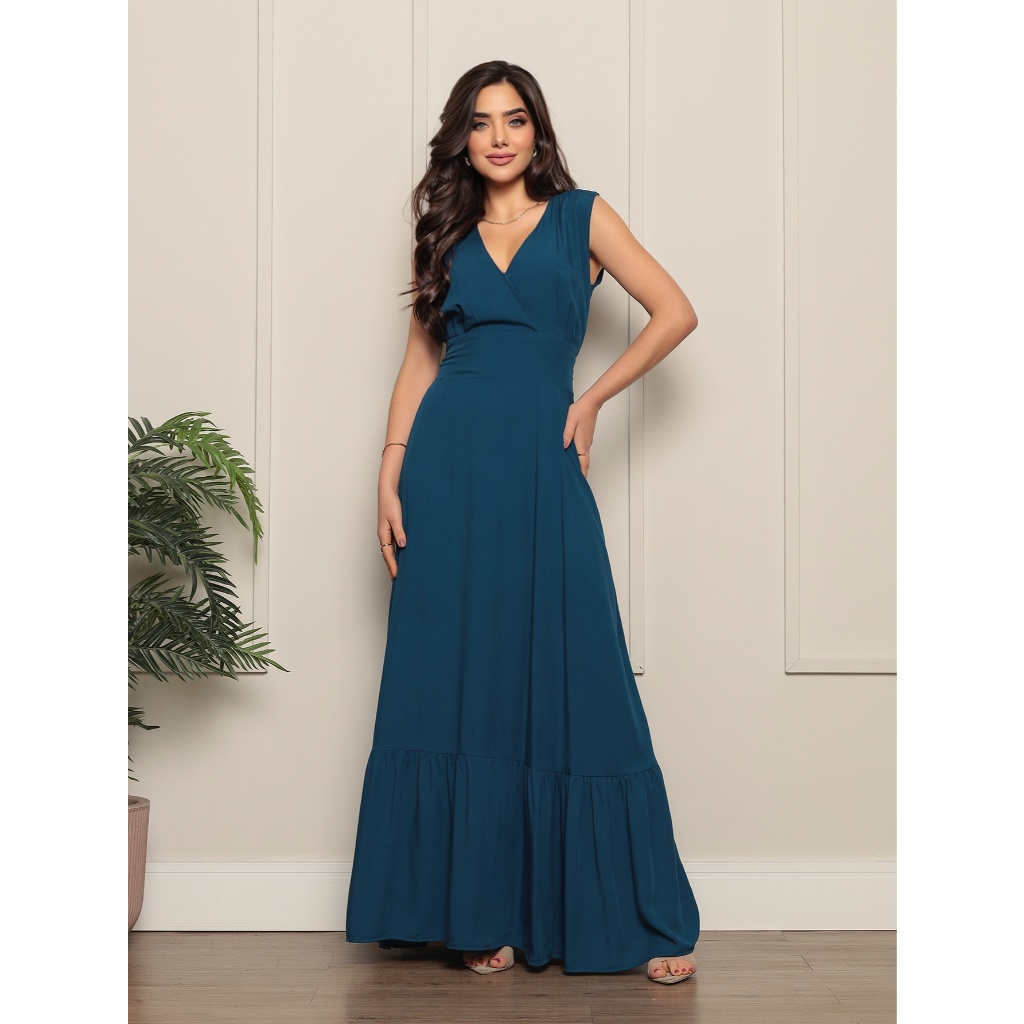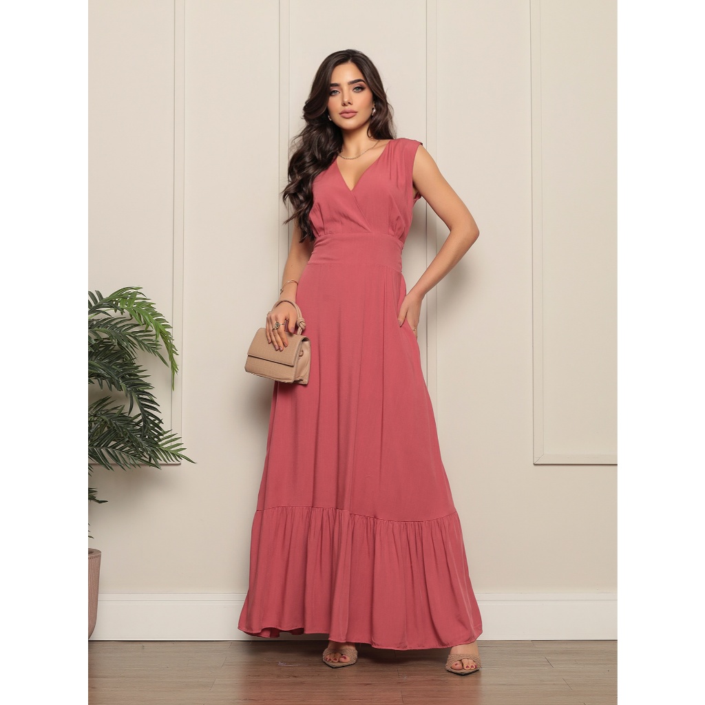 Vestido Longo Com Decote V