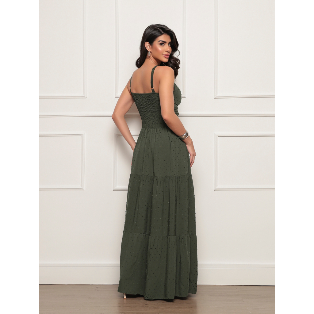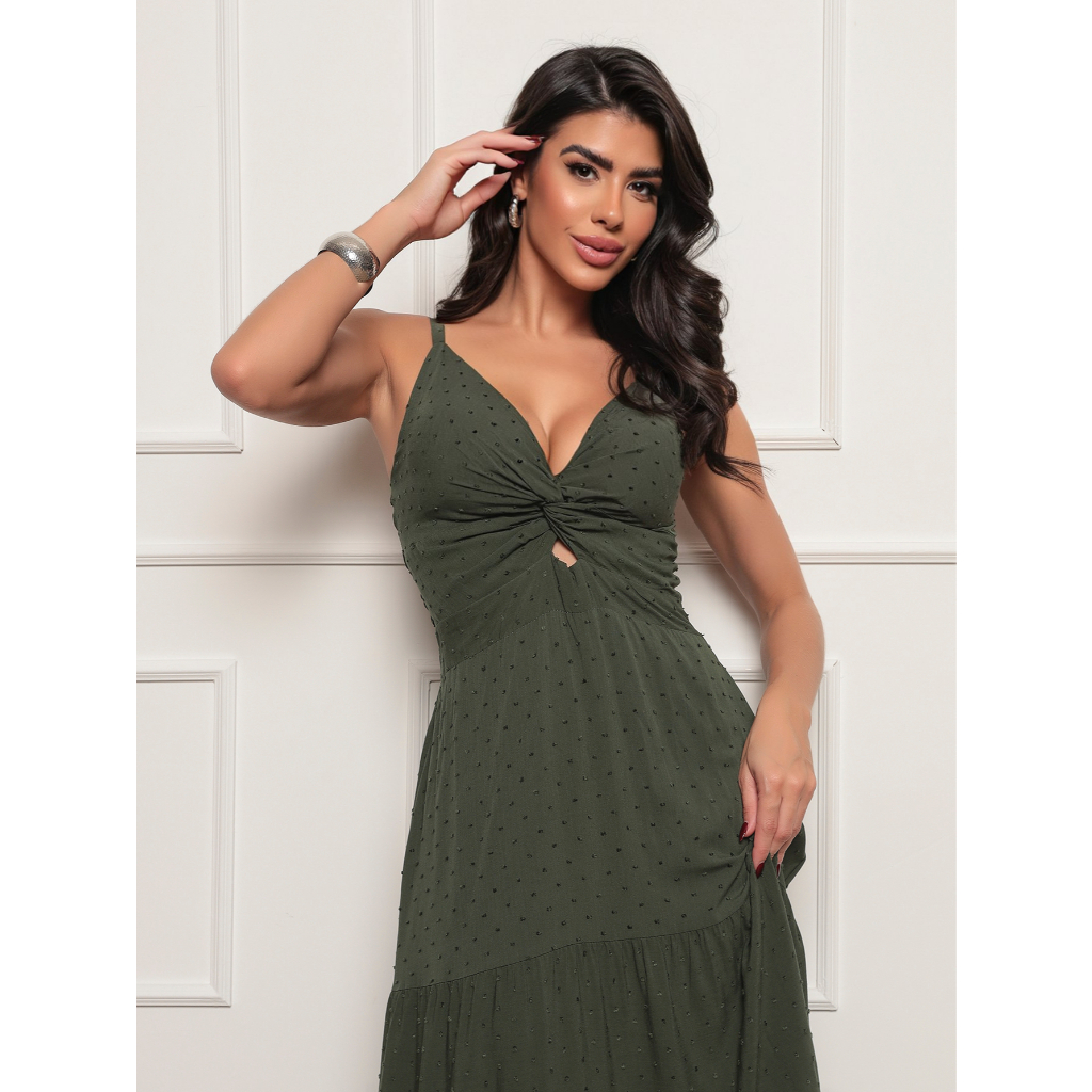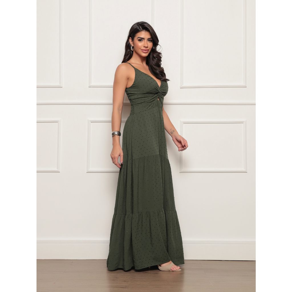 Vestido Pipoca com Detalhe de Nó na Cintura e Corte em Camadas para Eventos Especiais