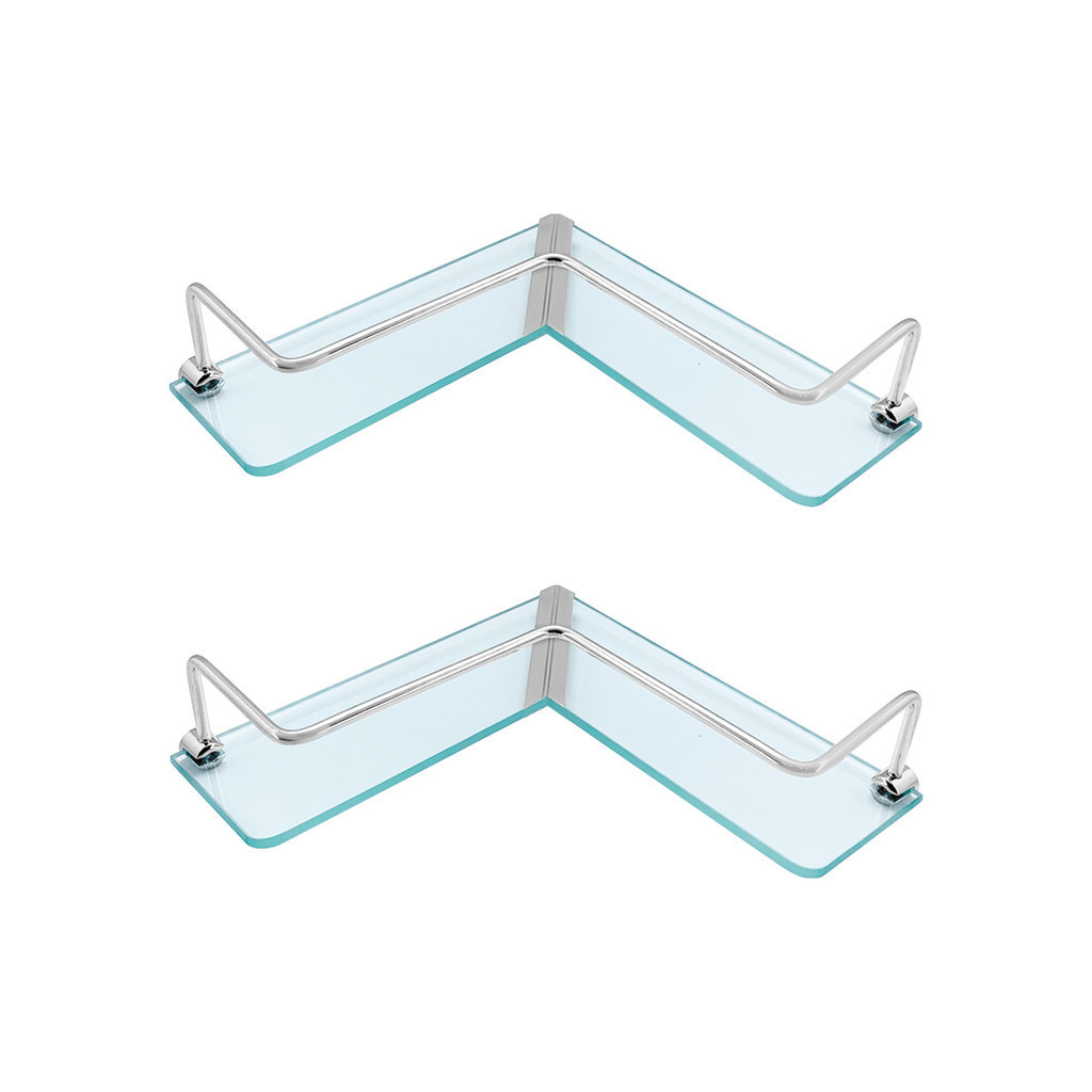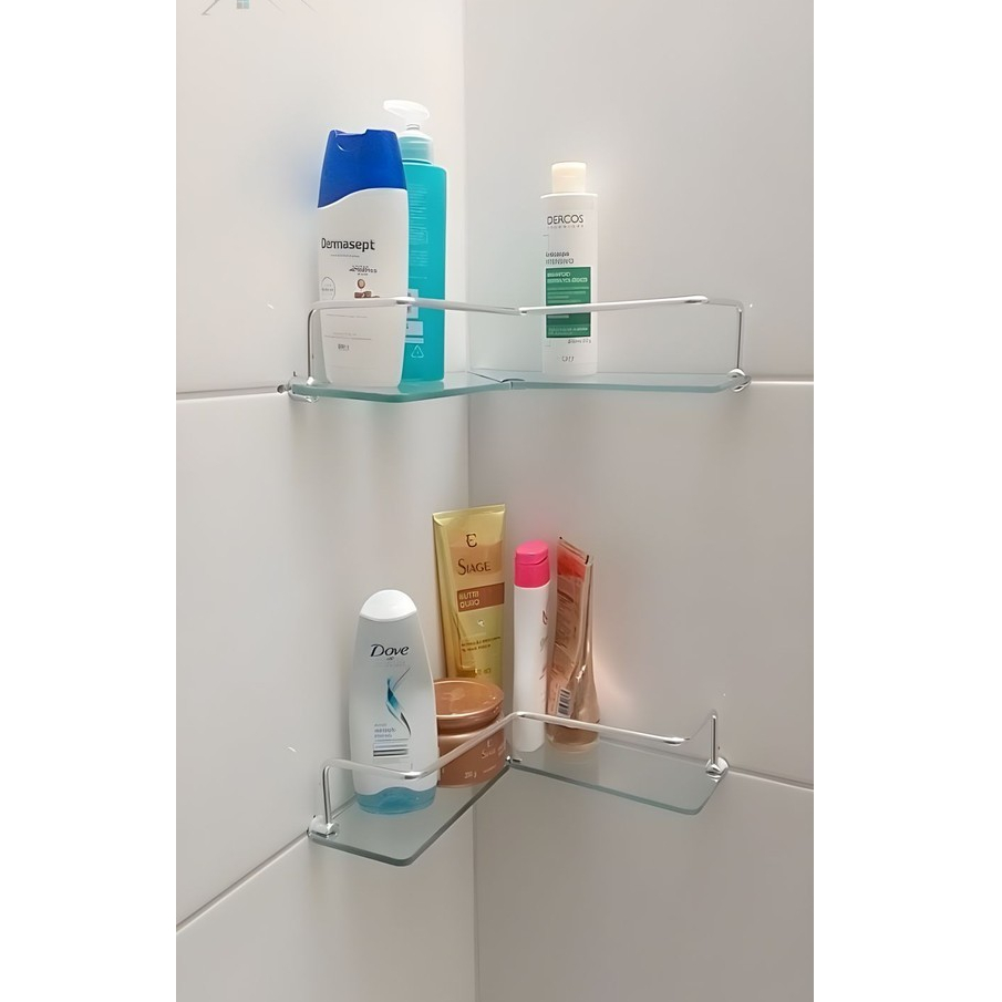 Kit 2 Porta Shampoo Canto em L Cromado Prateleira de vidro Organizador de Box Para Banheiro