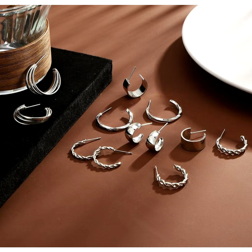 Conjunto de brincos torcido criativo, temperamento simples, pérola torção geométrica, personalidade, novo, 6 pares