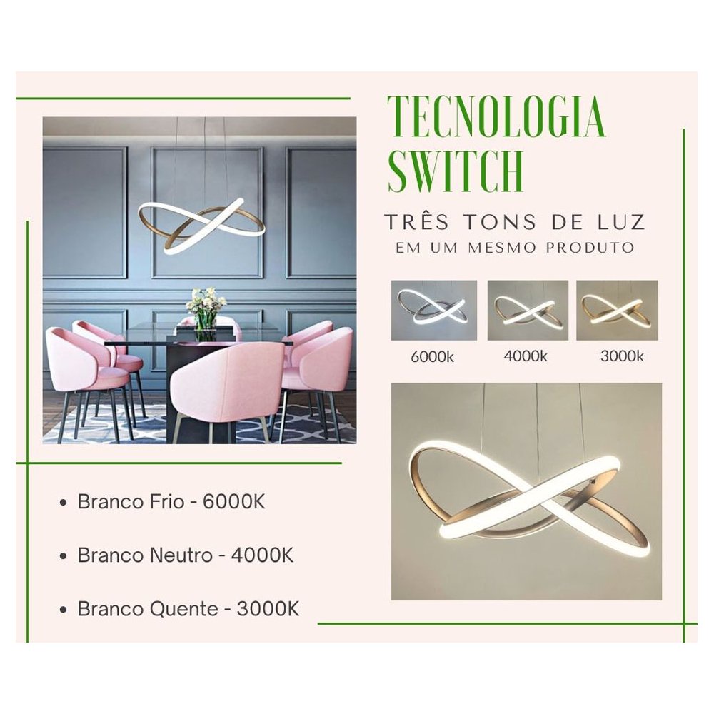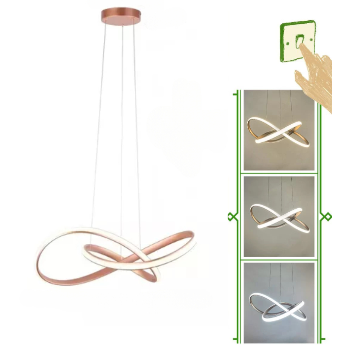 Lustre Pendente Moderno Rose Gold Infinito Curvas 50w Luz 3/1