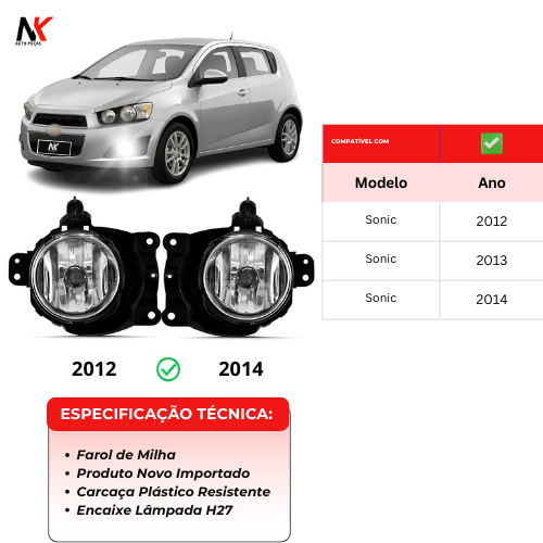 Par/Un Farol Milha Auxiliar Sonic 2012 2013 2014 1a Linha Novo