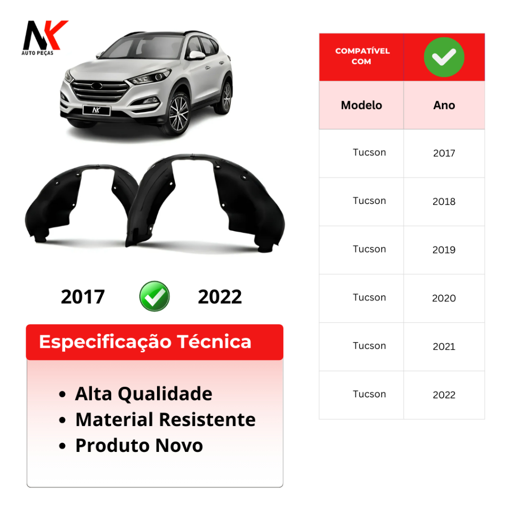 Par/Un Parabarro Dianteiro Tucson 2017 2018 2019 2020 2021 2022 ASA URUBU MORCEGAO FORRO RODA CASCA