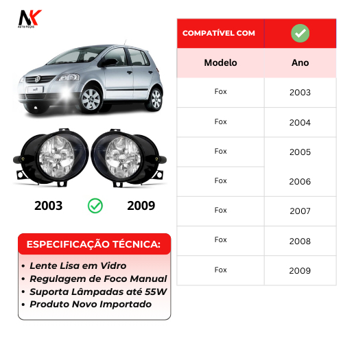 Par/Un Farol Milha Volkswagen Fox 2003 2004 2005 2006 2007 2008 2009 2010