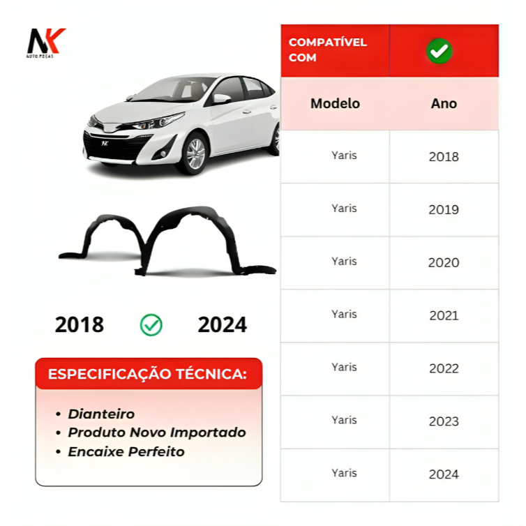 Par/Un Parabarro Dianteiro Yaris 2018 2019 2020 á 2024 PARABARRO ASA URUBU MORCEGAO FORRO RODA BATE PEDRA CASCA OVO PROT