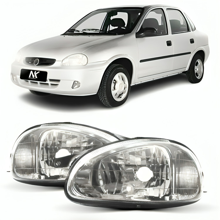 Farol Corsa 2001 2002 á 2010 Cromado FAROL CARCACA LENTE POLICARBONATO PRINCIPAL FAROLETE LANTER