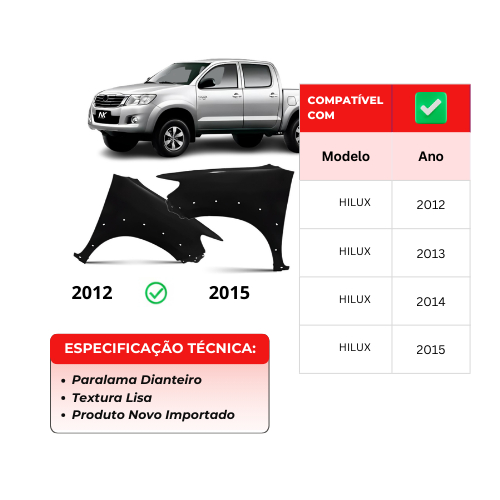 Par/Un Paralama Dianteiro Hilux 2012 2013 2014 2015 Furo Moldura Lameiros Para Lama 1ª Linha Novo
