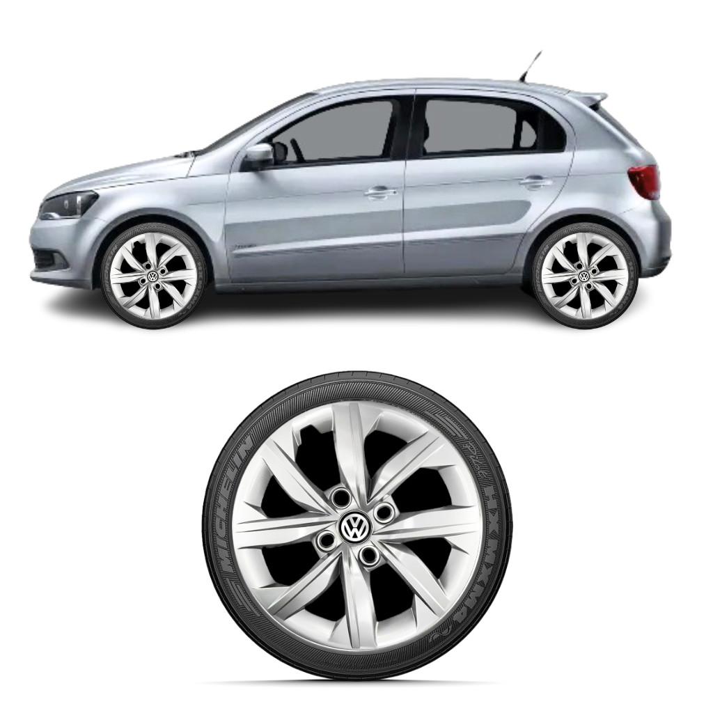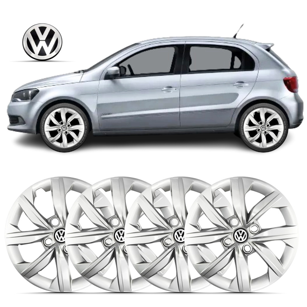 Kit 4 Calota Aro 14 Gol G5 G6 2015 2016 2017 Prateado Com Emblema
