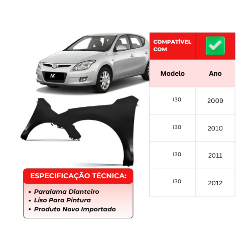 Par/Un Paralama Dianteiro I30 2009 2010 2011 2012 1ª Linha Novo Para Lama Lameiro Curvao