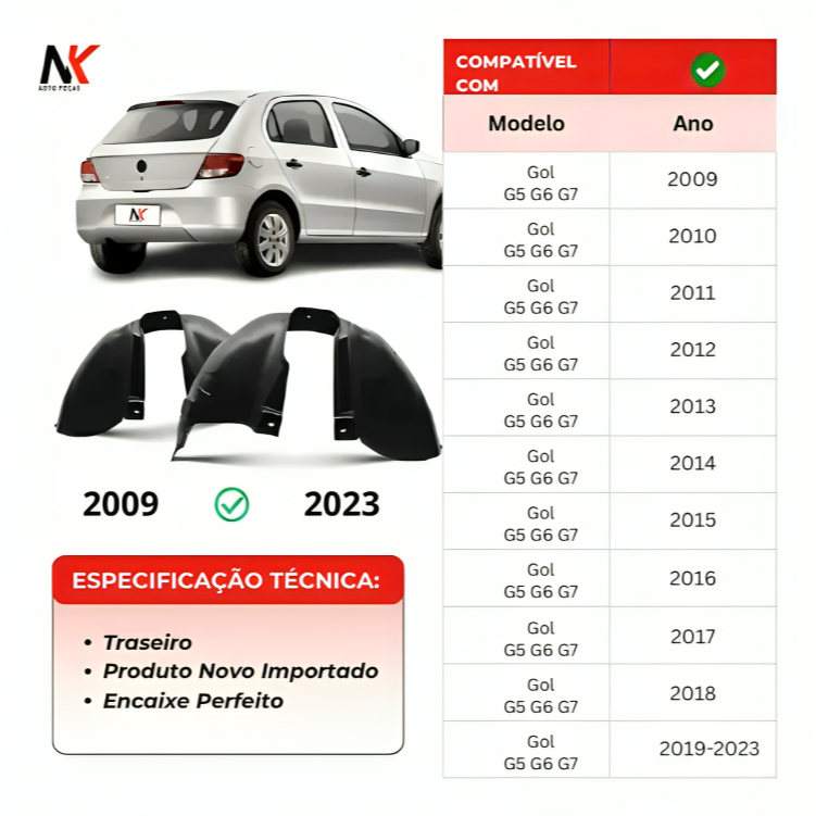 Par/UN Parabarro Traseiro Gol G5 G6 G7 2009 Á 2023 ASA URUBU MORCEGAO FORRO RODA BATE PEDRA