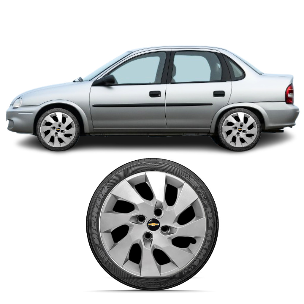 Kit 4 Calota Aro 13 Corsa Classic 2008 á 2012 Com Emblema