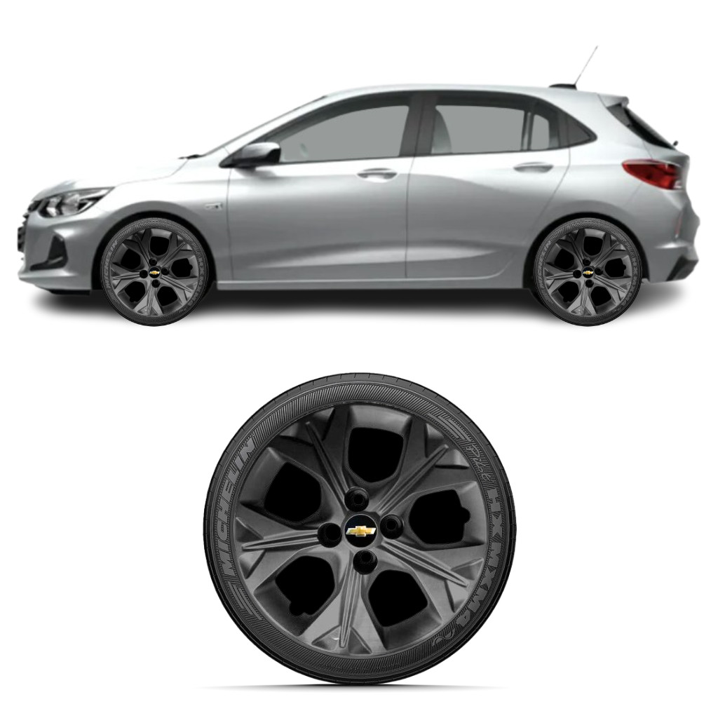Kit 4 Calota Aro 14 Onix Prisma 2021 Preta Brilhante Black Piano Esportiva