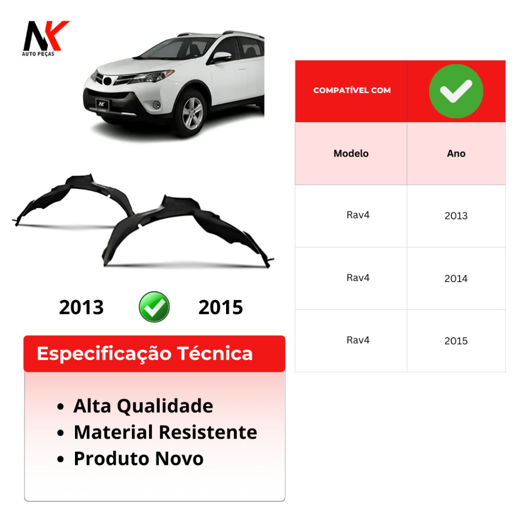 Par/Un Parabarro Dianteiro RAV4 2013 2014 2015 2016 2017 PARABARRO ASA URUBU MORCEGAO FORRO RODA BATE PEDRA CASCA OVO PR