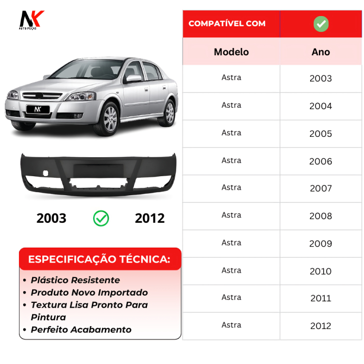 Parachoque Dianteiro Astra 2003 2004 2005 2006 A 2012 Com Furo