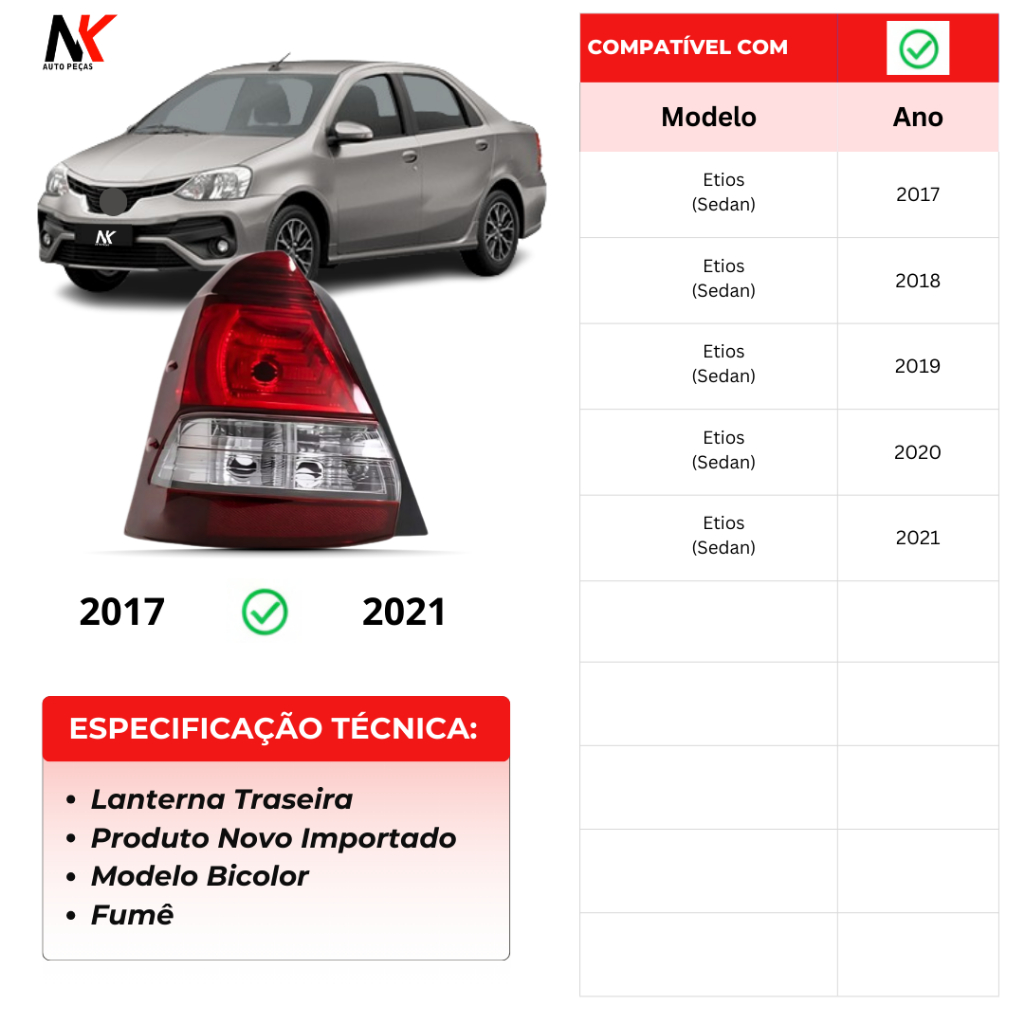 Par/Un Lanterna Traseira Etios Sedan 2017 2018 2019 2020 2021 Fume