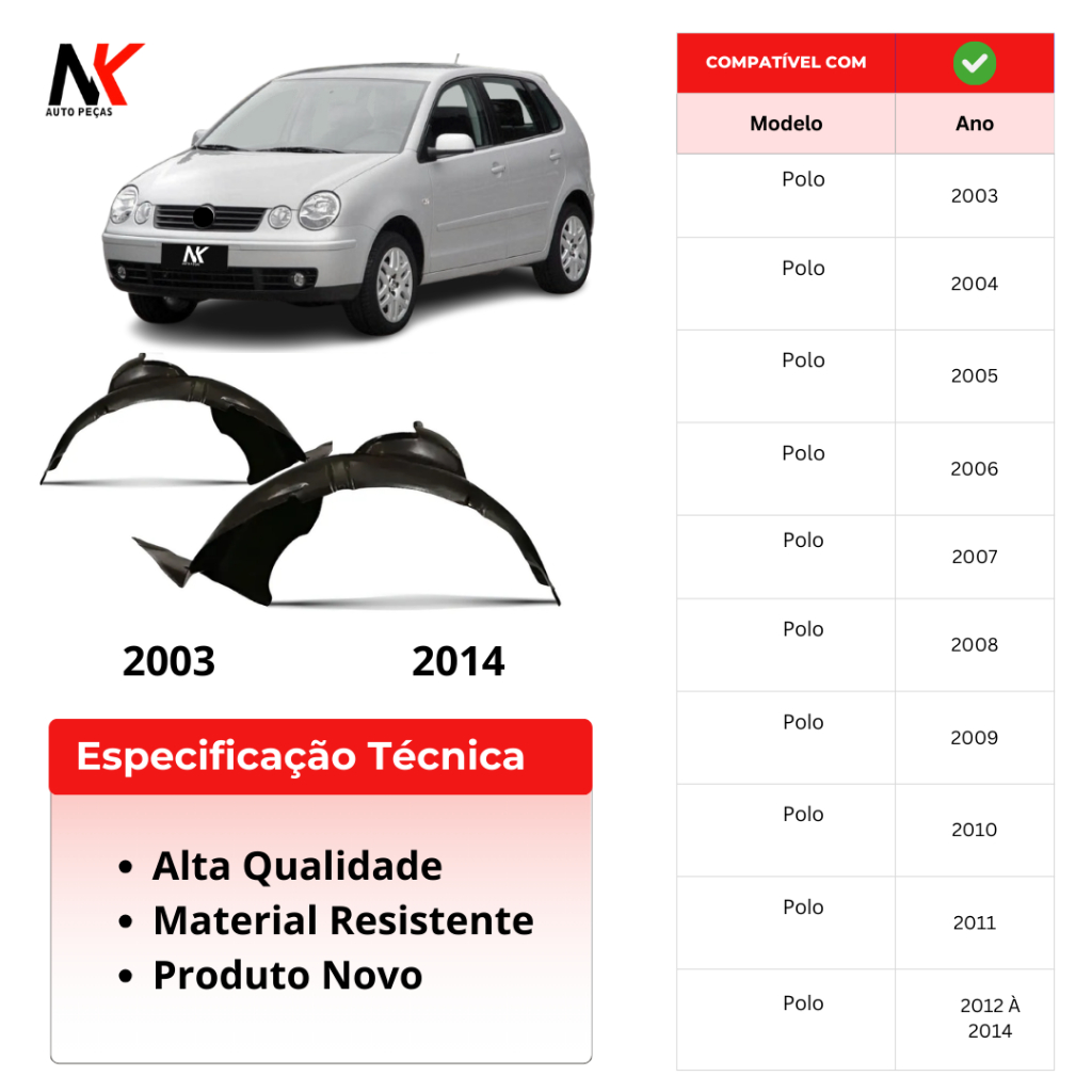 Parabarro Dianteiro Polo Hatch Sedan 2003 04 05 06 007 08 A 2014 URUBU MORCEGAO FORRO RODA BATE PEDRA CASCA OVO PROTETO