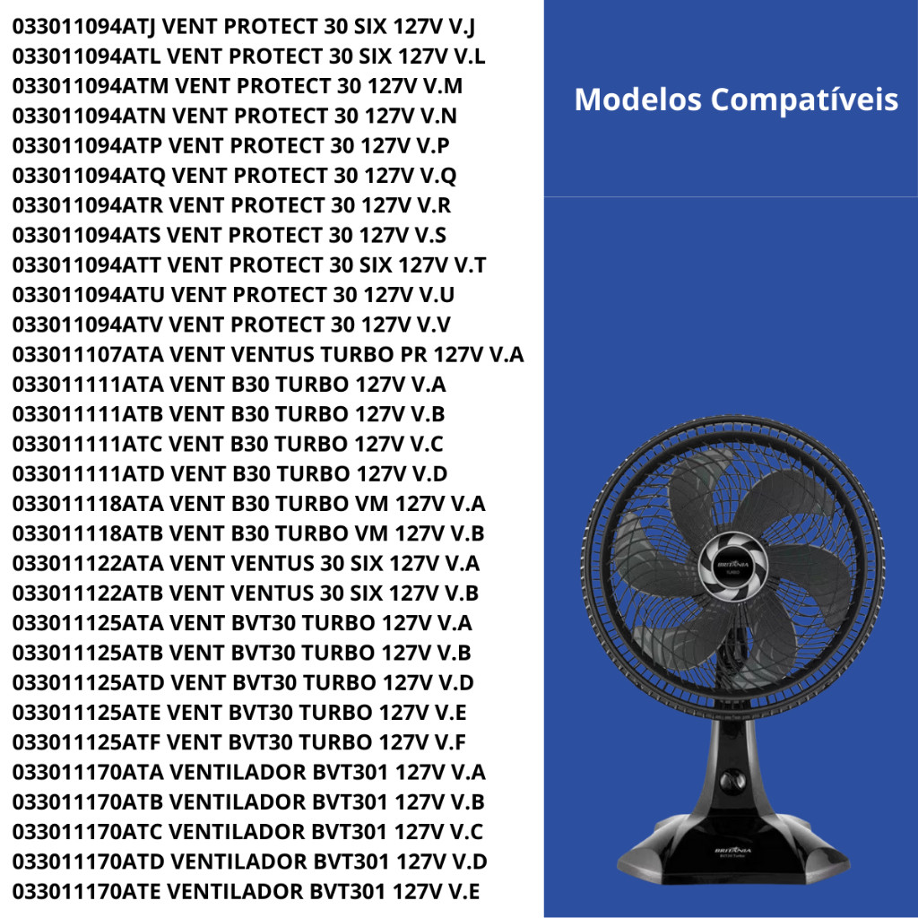 Hélice Britânia Ventilador 30cm Funda BVT30 Turbo Preto 6 Pas Original