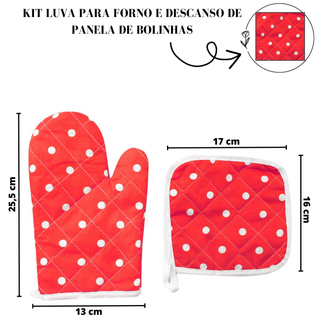 Conjunto Cozinha Avental Luva de Forno e Descanso de Panela Resistente ao Calor