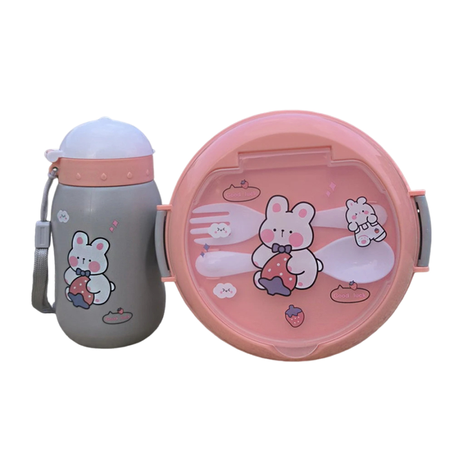 Kit Lancheira Infantil Marmita Com Garra Garfo Colher Pote Com Tampa