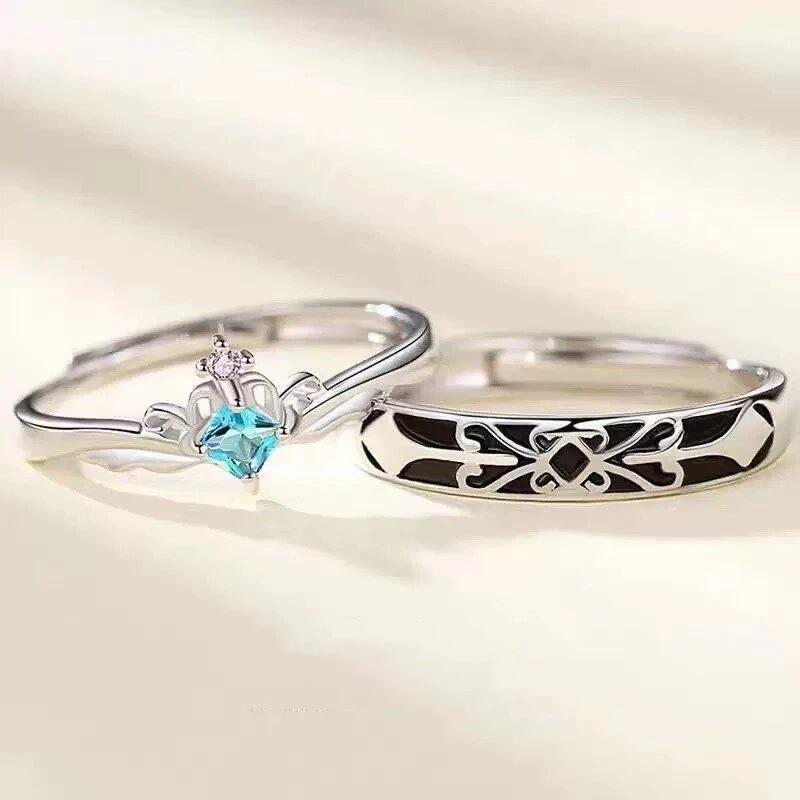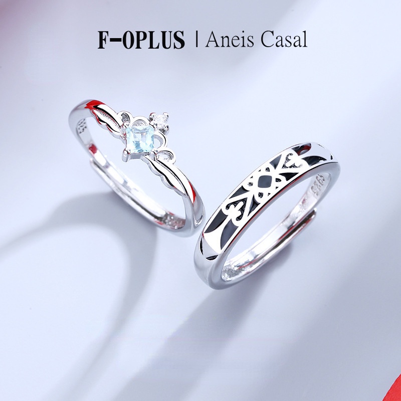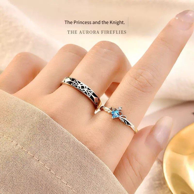 F-OPLUS | Aliança Princesa e Cavaleiro Ajustável Anel Aliança das Princesas de Namoro Compromisso com Caixa CRC008