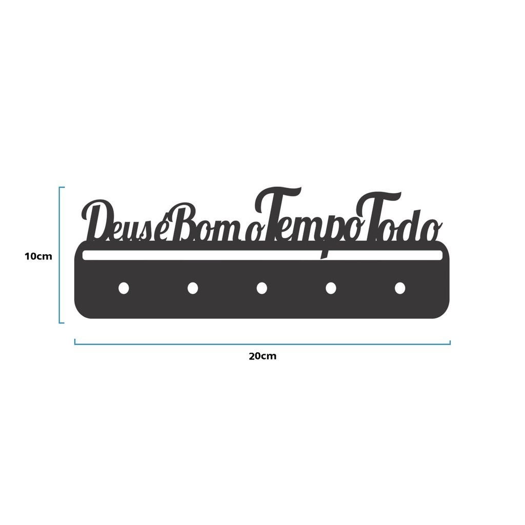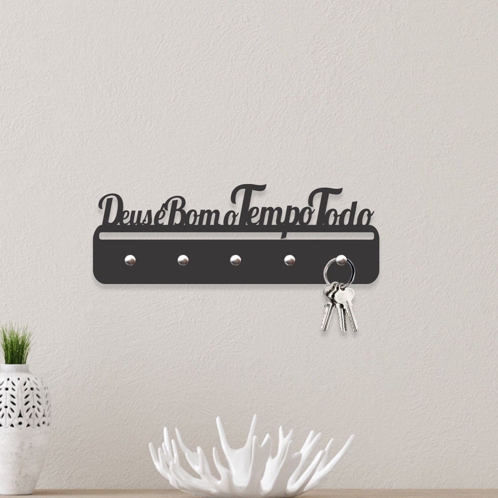 Porta Chaves Deus é Bom em Mdf Vazado de 3mm Preto Fosco