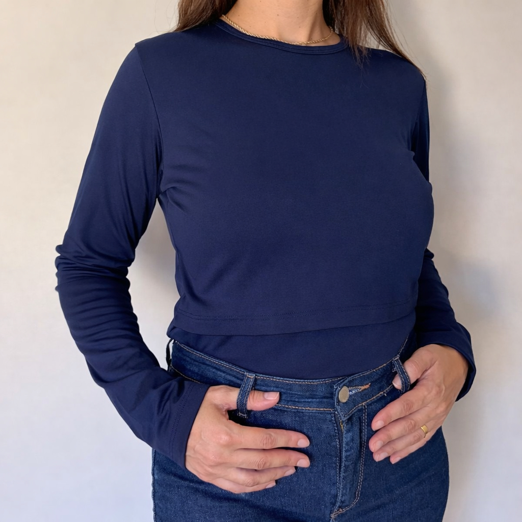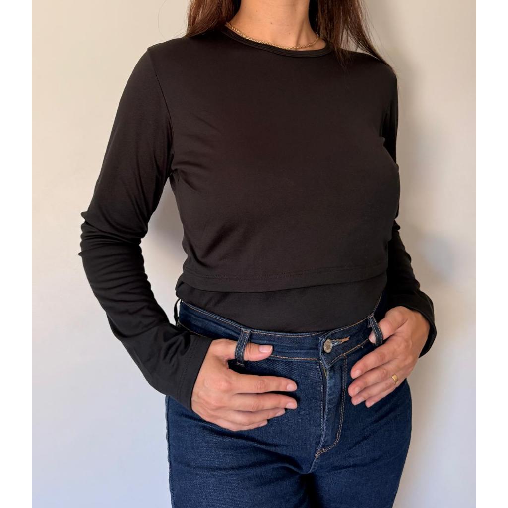 Blusa Feminina Térmica Peluciada Amamentação de Manga Comprida P ao GG