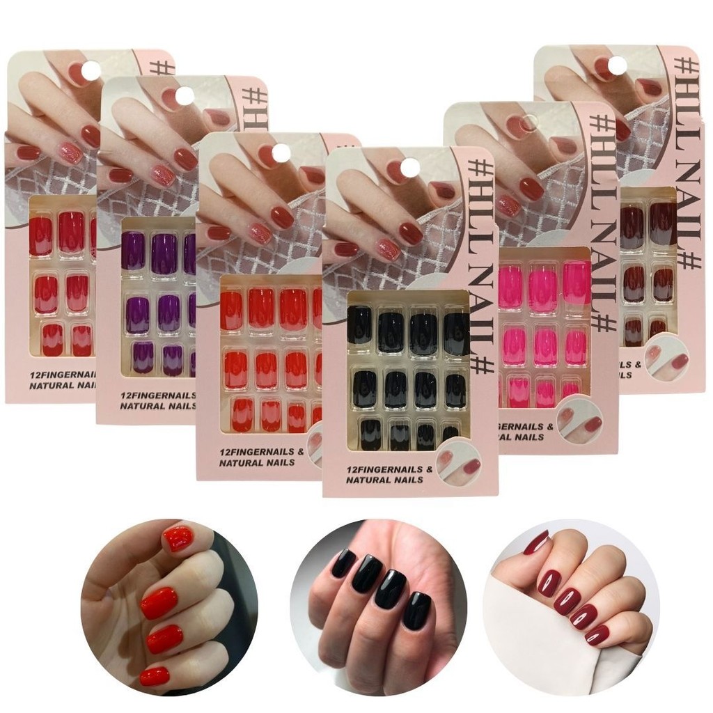 Unhas Postiças Curta Com Adesivos Autocolantes C/12 Unidades