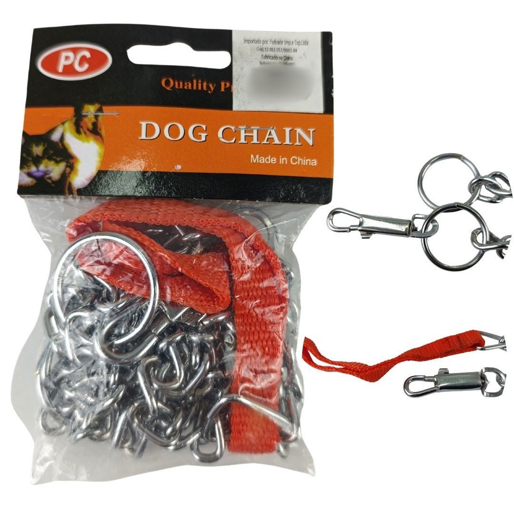 Enforcador Coleira Com Corrente de Aço Para Pet Cachorros Cães Passeio Bulldog Pitbull - Com alça