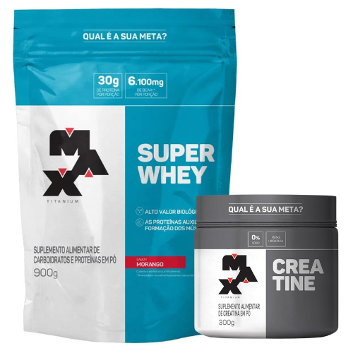 Kit Super Whey 900g Refil + Creatina 300g Pote - Max Titanium