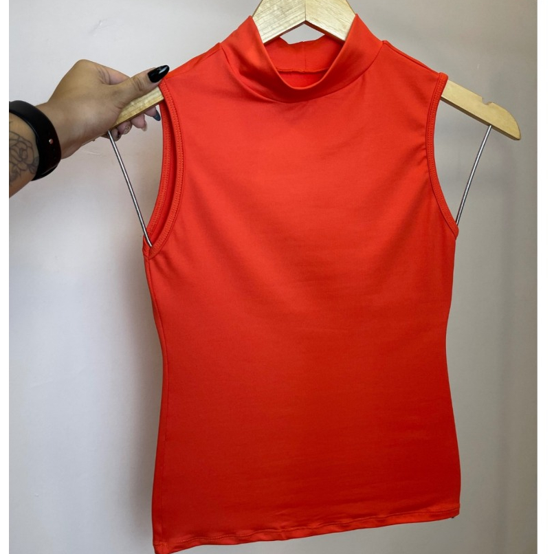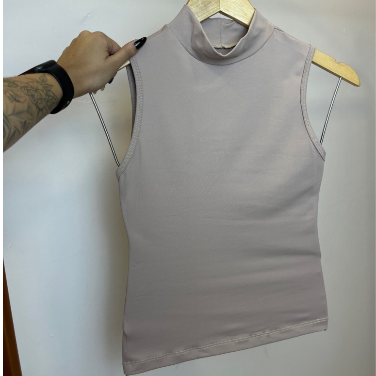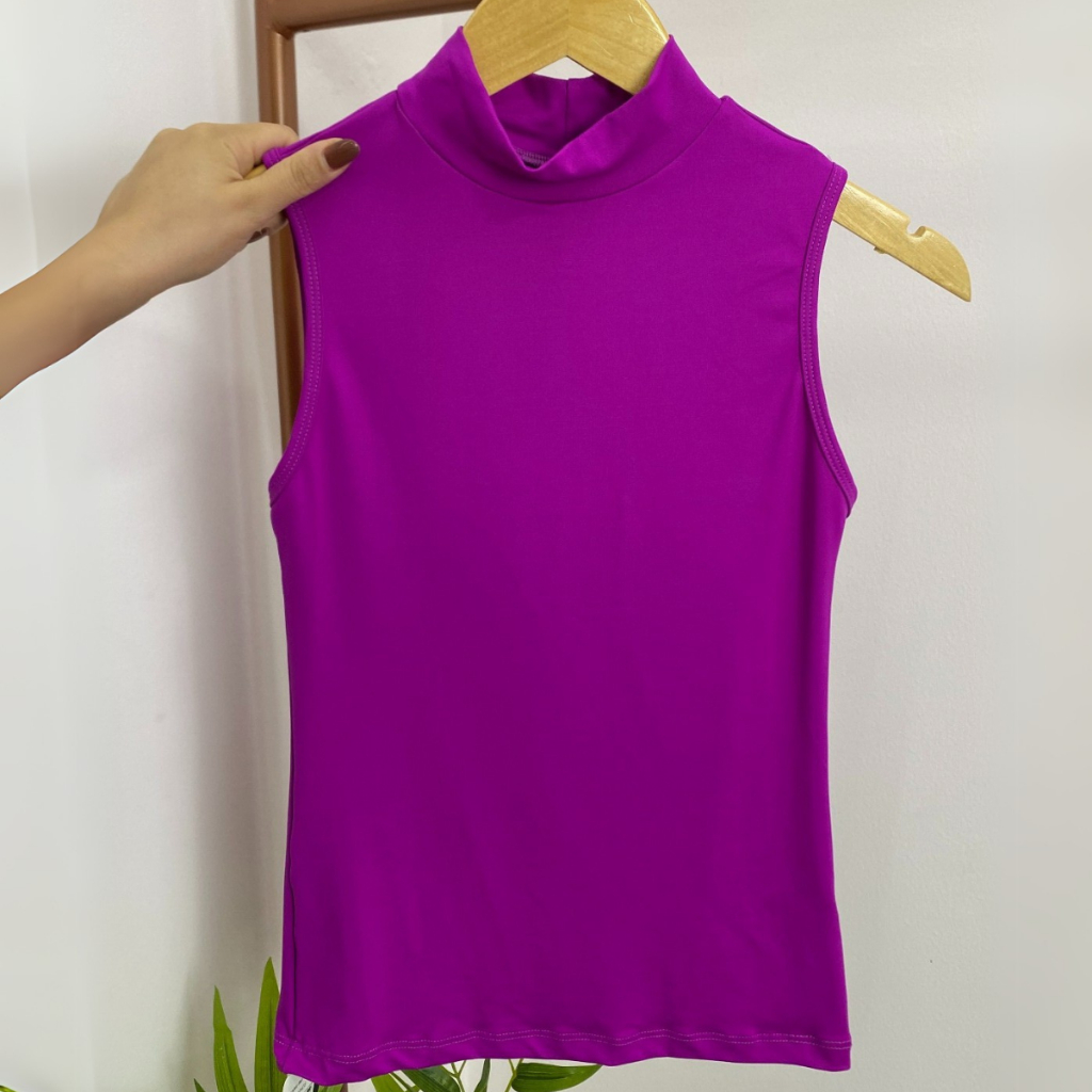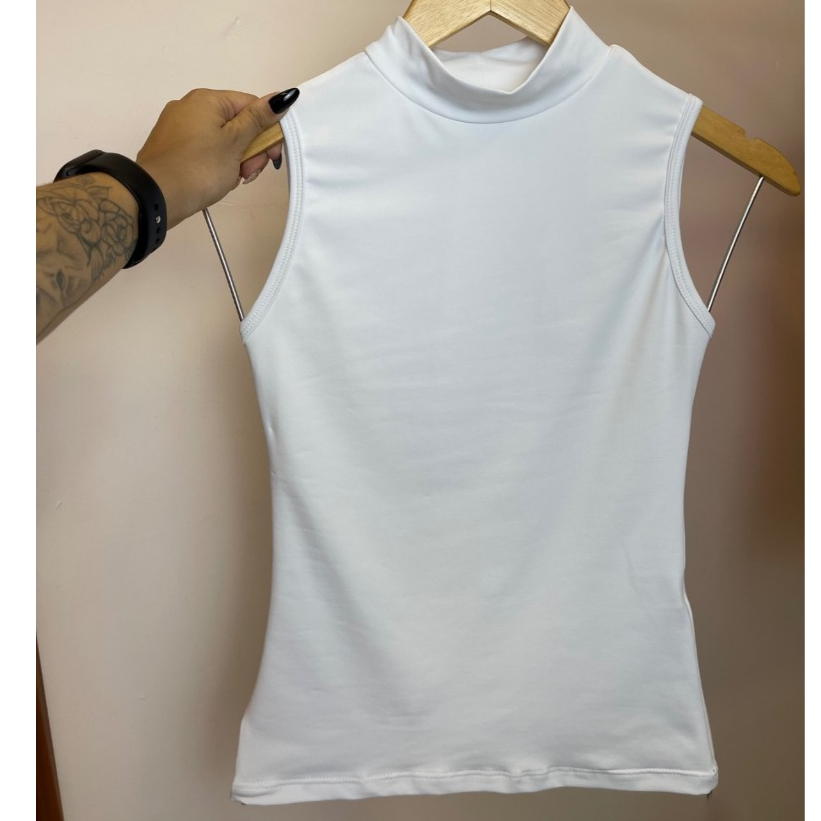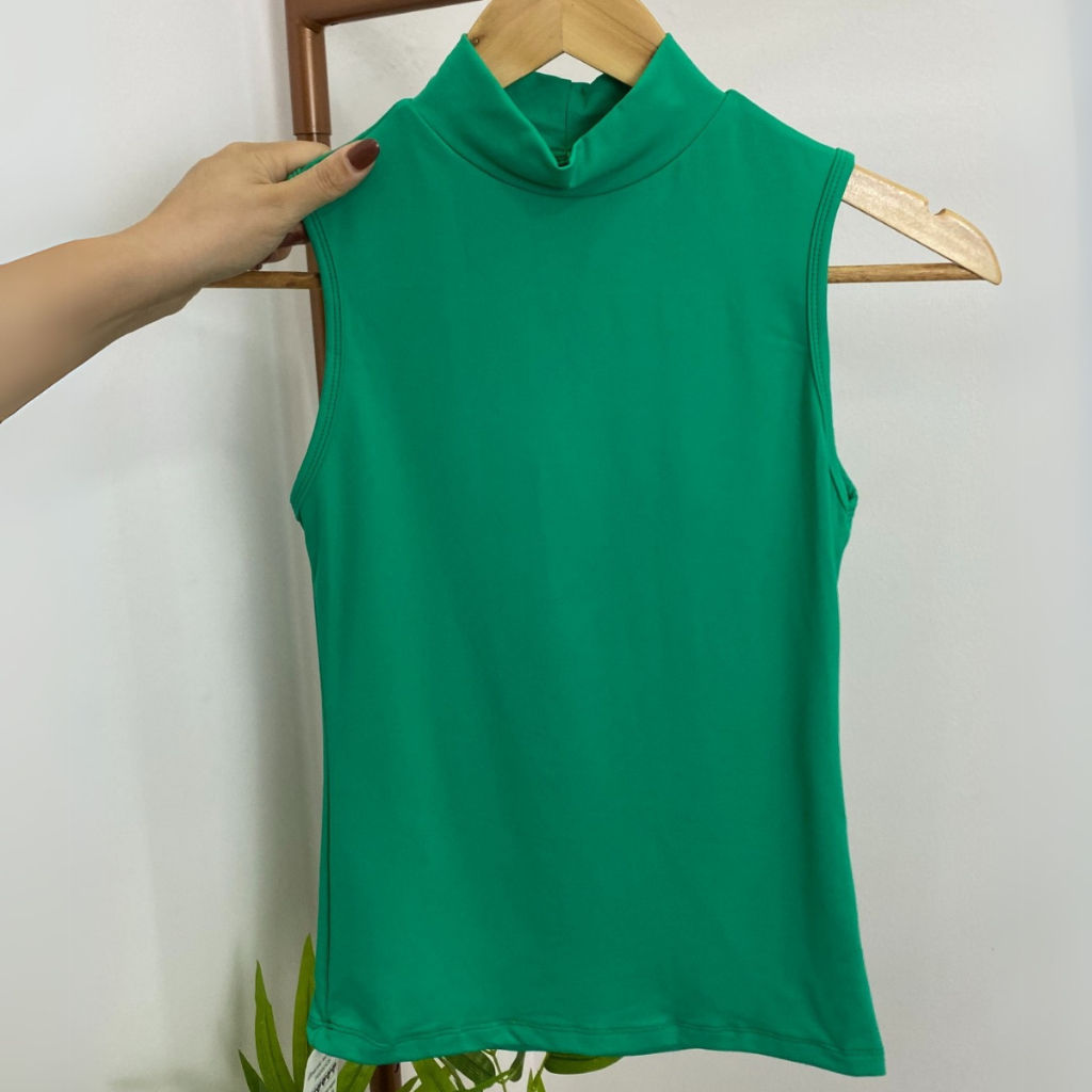 Regata Feminina Gola Alta Lisa Verão Suplex Básica Dia a Dia Calor